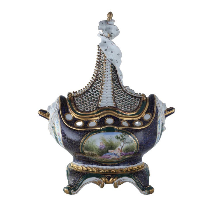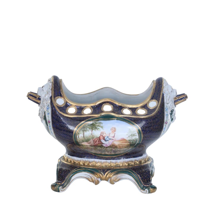 This Potpourri Hand-painted Jar is more than just an exquisite decor piece; it's a true work of art that elevates any space it graces. The jar, expertly balanced atop an ornate square base, exudes an air of sophistication and grandeur.