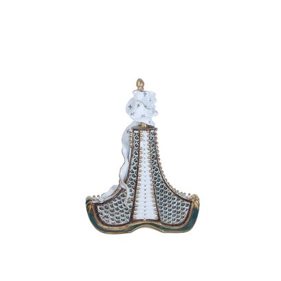 Presenting an exquisite Potpourri Hand-painted Jar, a testament to the marriage of artistry and elegance. This captivating piece features a jar delicately perched atop an ornate square base, boasting an eye-catching palette of blue, white, and gold that lends a sense of opulence to any setting. The true highlight of this jar is its meticulously hand-painted pattern, rendered in stunning shades of gold, blue, and purple, creating a visual symphony of colors and artistry.