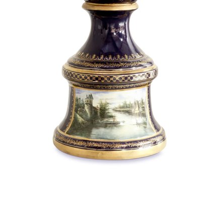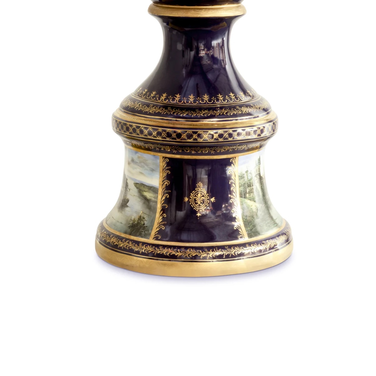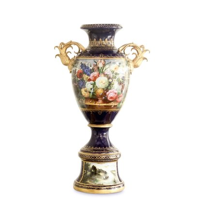 Depicting a classical still-life scene executed in shades of red, blue, and green, this vase is a one-of-a-kind creation that exudes timeless beauty. Completely hand-painted and composed of porcelain and bronze, it's a testament to the dedication of skilled artisans.