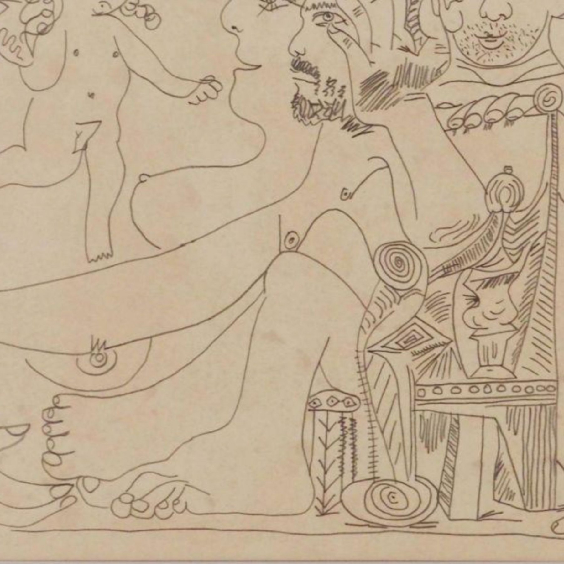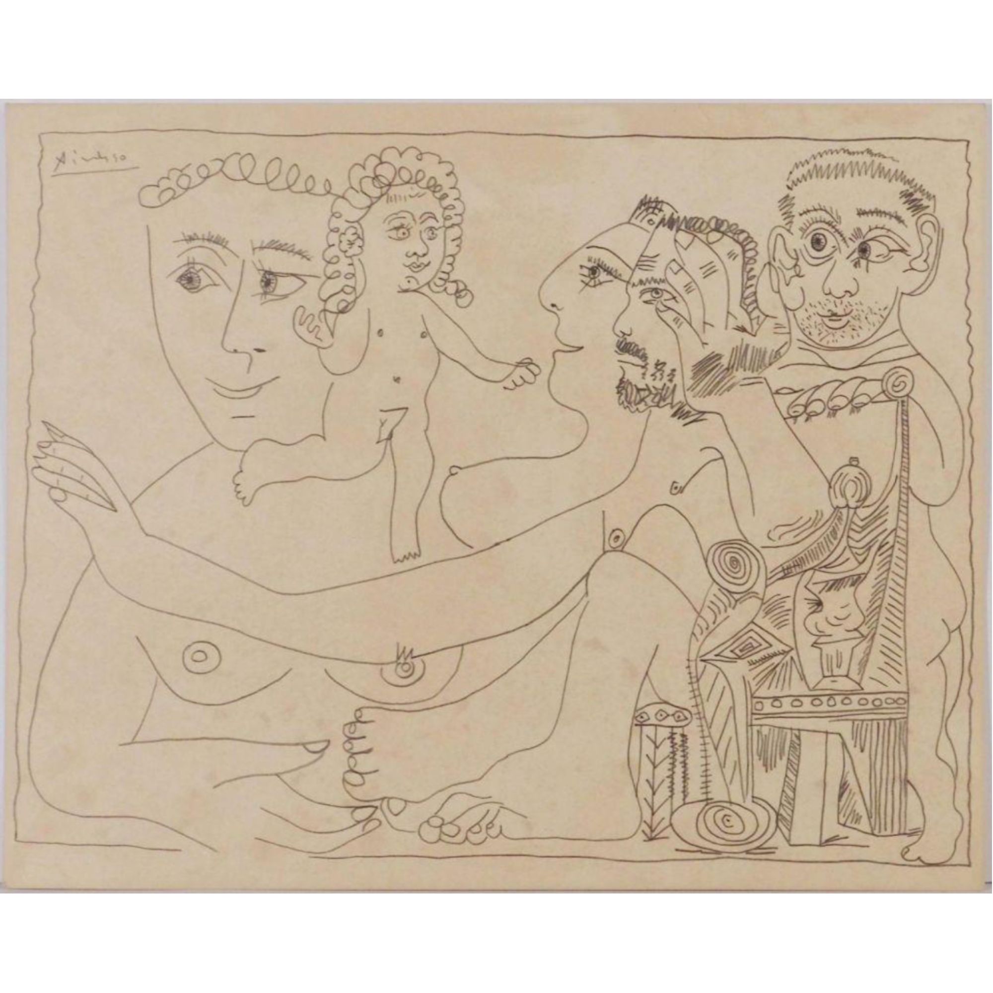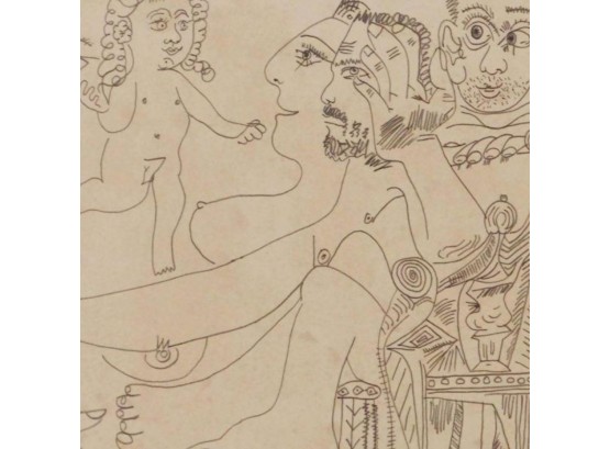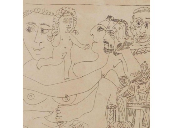 "Pablo Picasso (Spanish, 1881-1973) Manner of/ Attributed: Cubist Figures. Pencil on heavy paper, signed, undated . Unframed. The drawing offered comprises part of the ""Pacific Palisades Collection""; so named for their Southern California location of acquisition from London, England based art dealer Bill Ferrari during the years spanning 2004-2008.