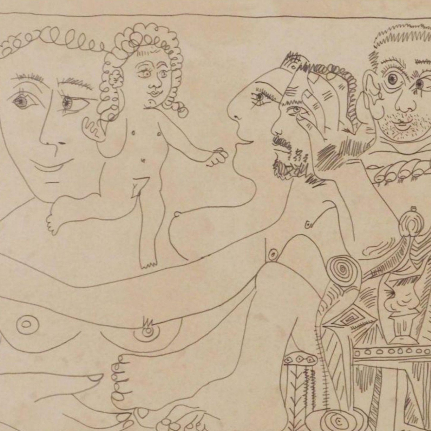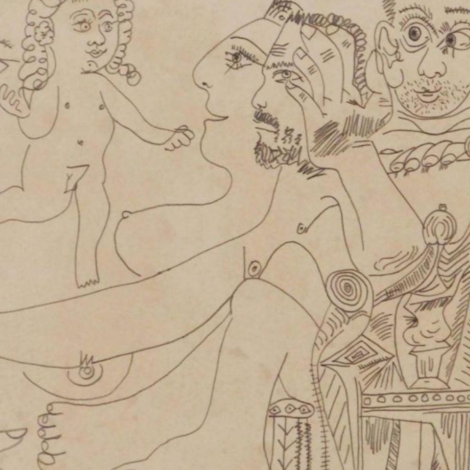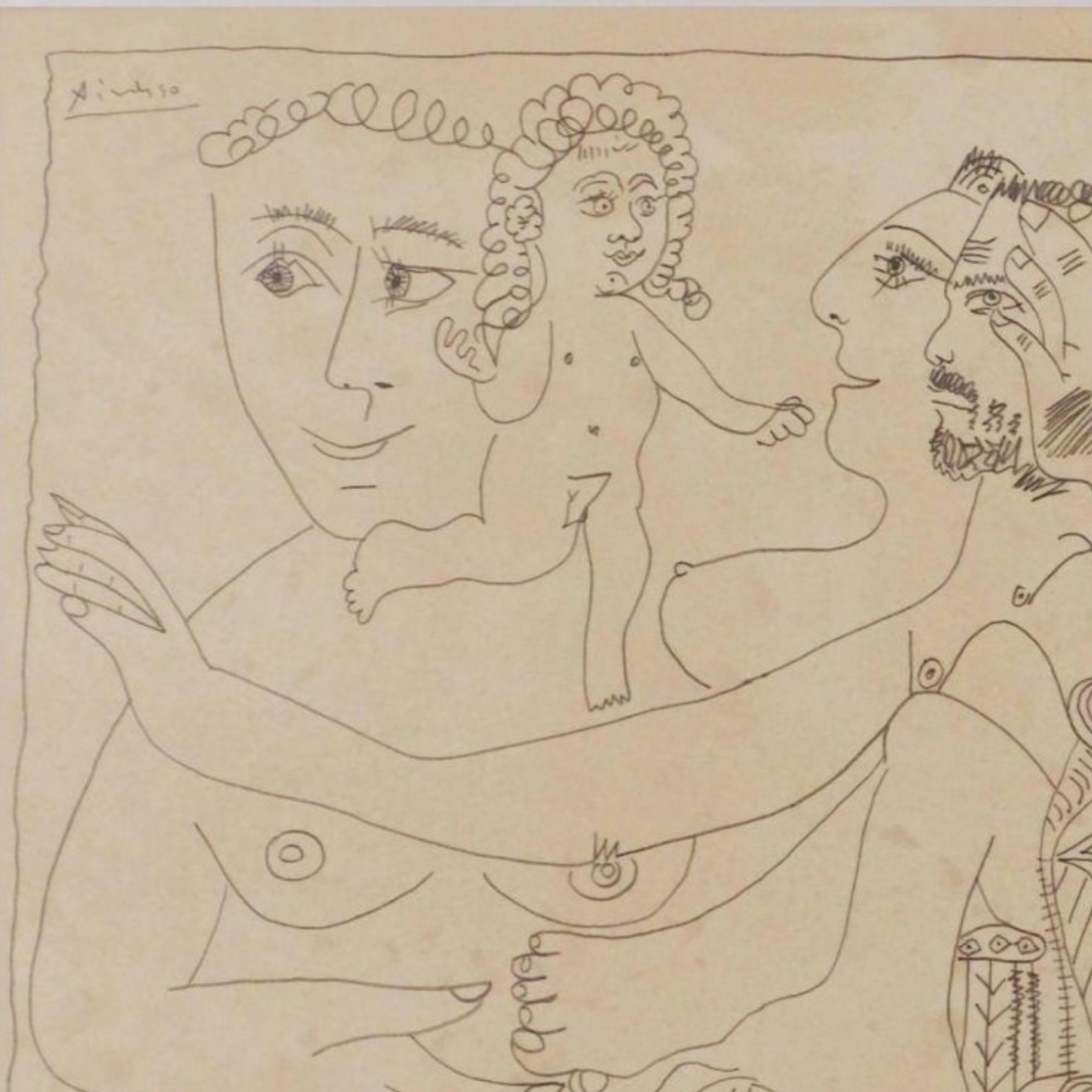"Pablo Picasso (Spanish, 1881-1973) Manner of/ Attributed: Cubist Figures. Pencil on heavy paper, signed, undated . Unframed. The drawing offered comprises part of the ""Pacific Palisades Collection""; so named for their Southern California location of acquisition from London, England based art dealer Bill Ferrari during the years spanning 2004-2008.