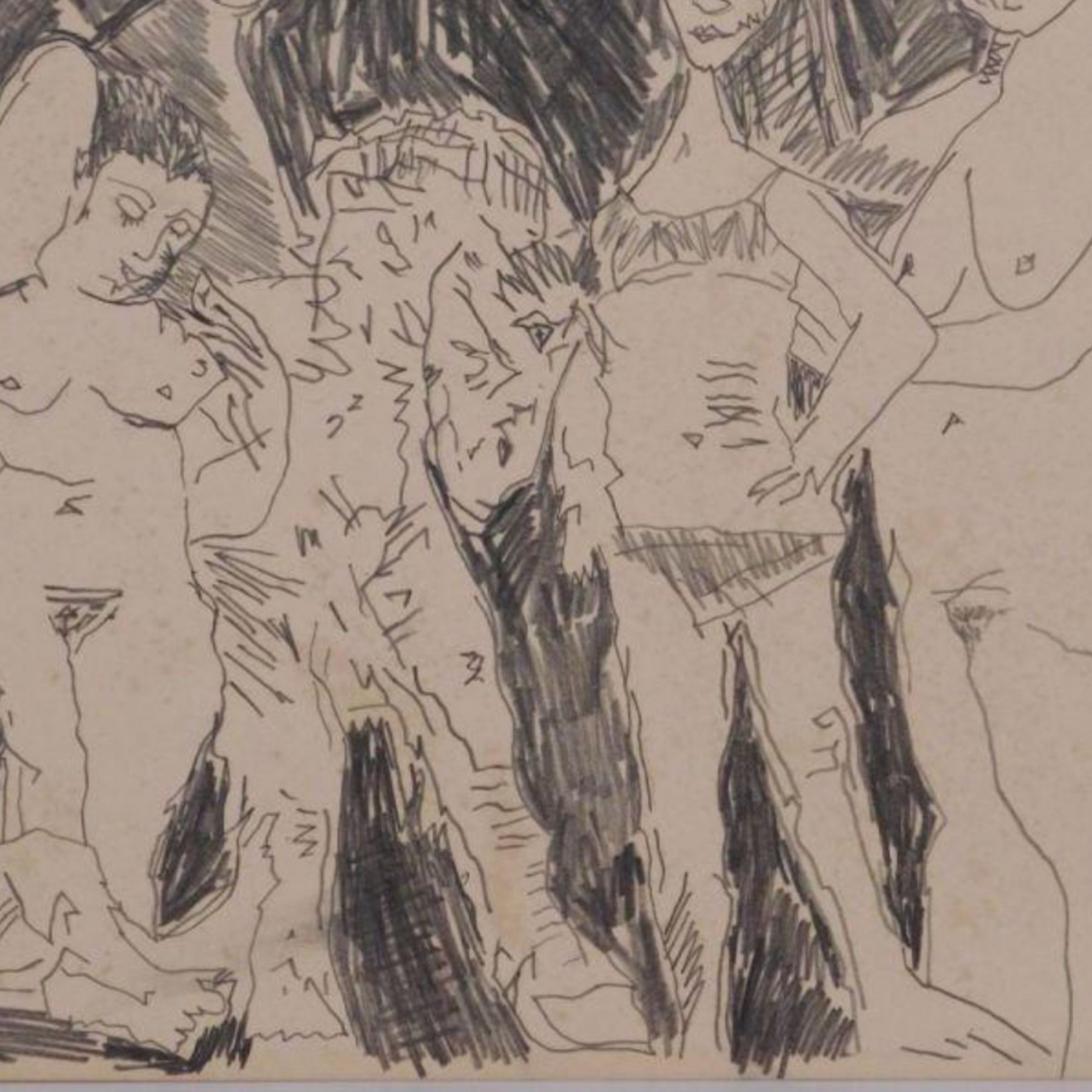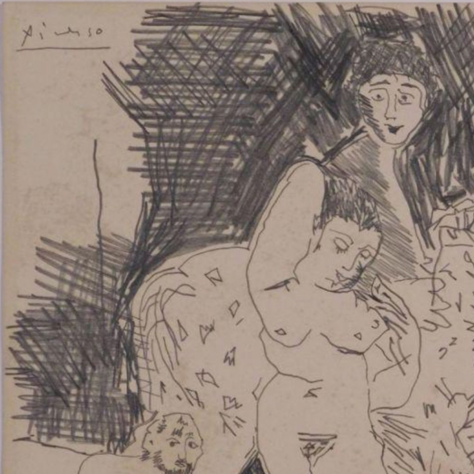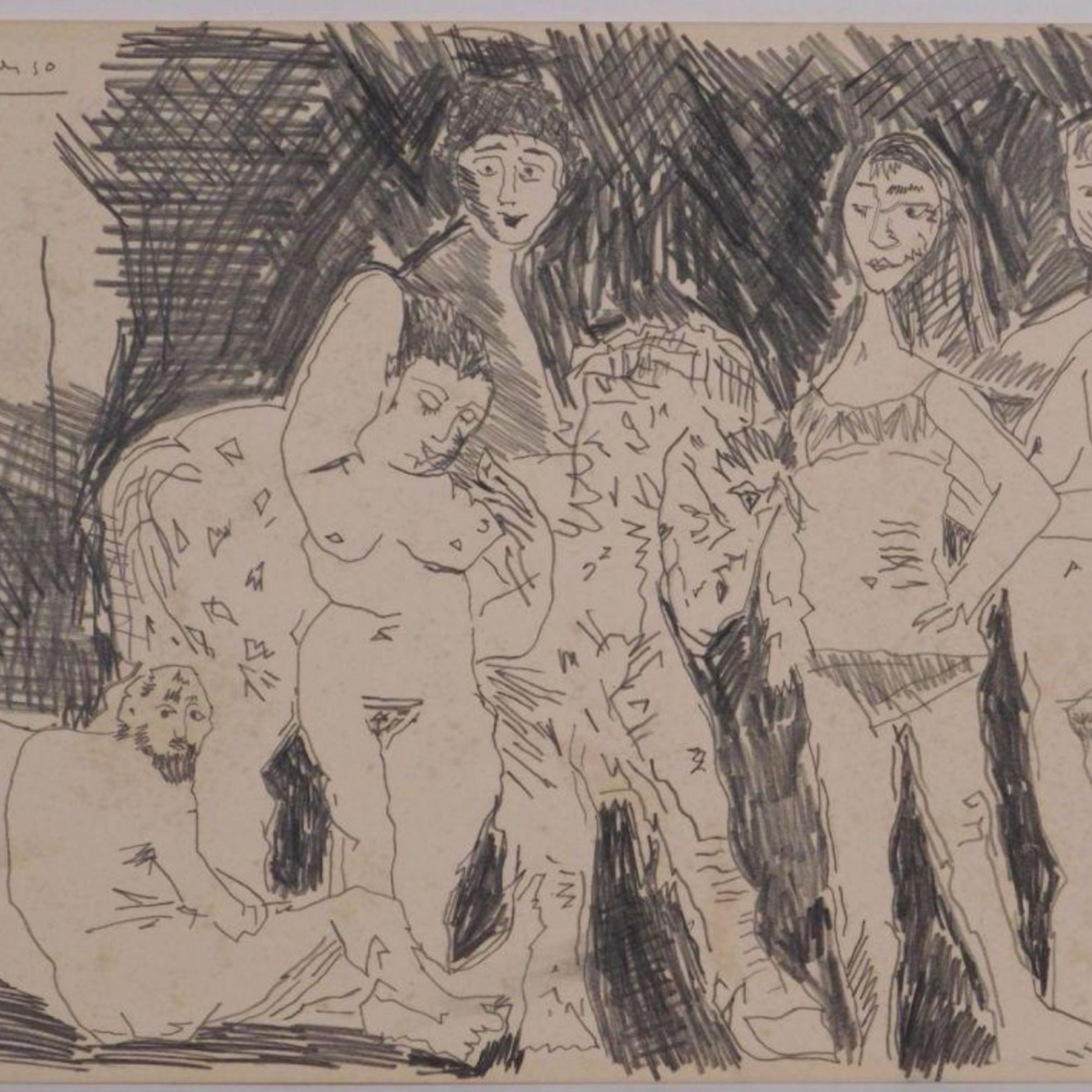 "Pablo Picasso (Spanish, 1881-1973) Manner of/ Attributed: Des Femmes et un Cheval. Graphite on heavy paper, signed upper left. Unframed. The drawing offered comprises part of the ""Pacific Palisades Collection""; so named for their Southern California location of acquisition from London, England based art dealer Bill Ferrari during the years spanning 2004-2008.