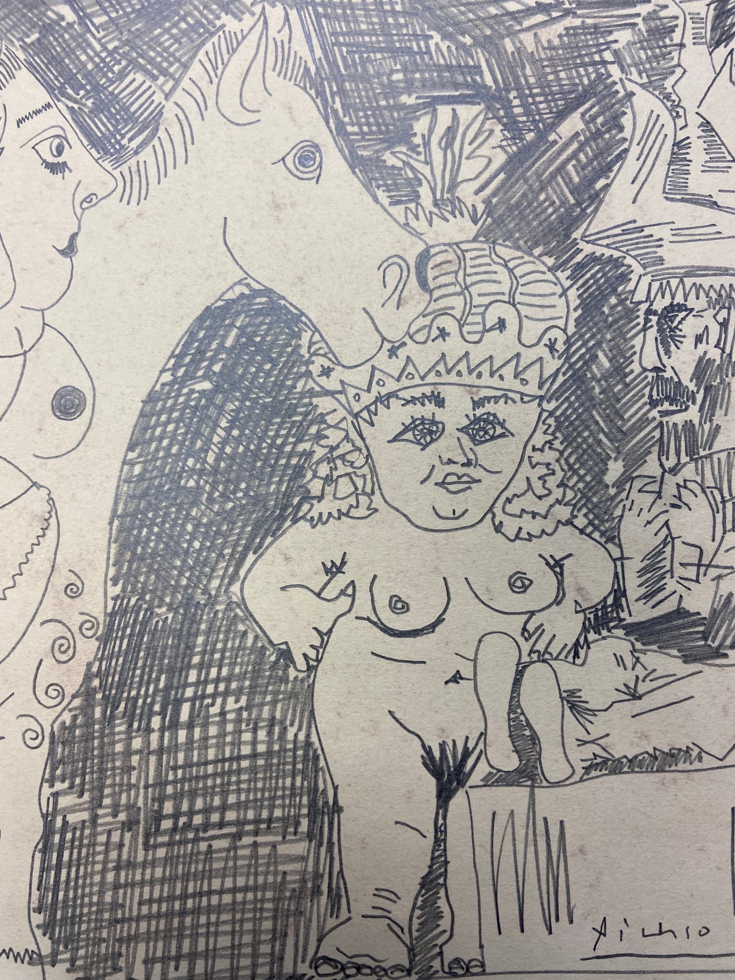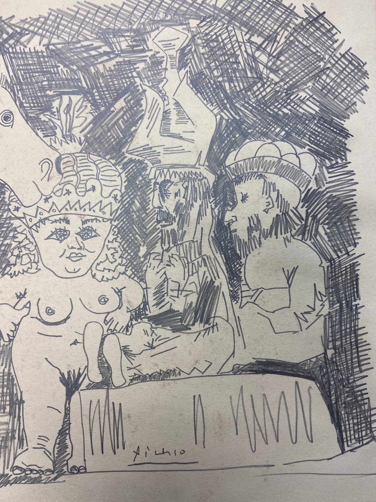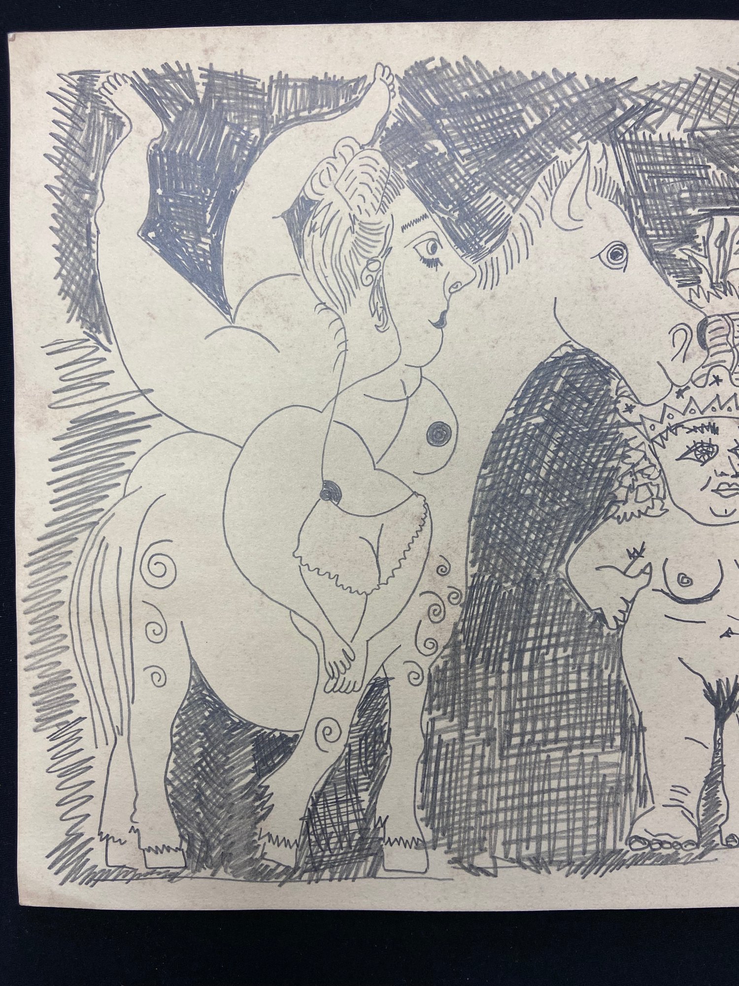 Pablo Picasso (Spanish, 1881-1973) Manner of/ Attributed: Le Cirque. Pencil on heavy paper, signed below, in pencil. Unframed. The drawing offered comprises part of the ""Pacific Palisades Collection""; so named for their Southern California location of acquisition from London, England based art dealer Bill Ferrari during the years spanning 2004-2008.