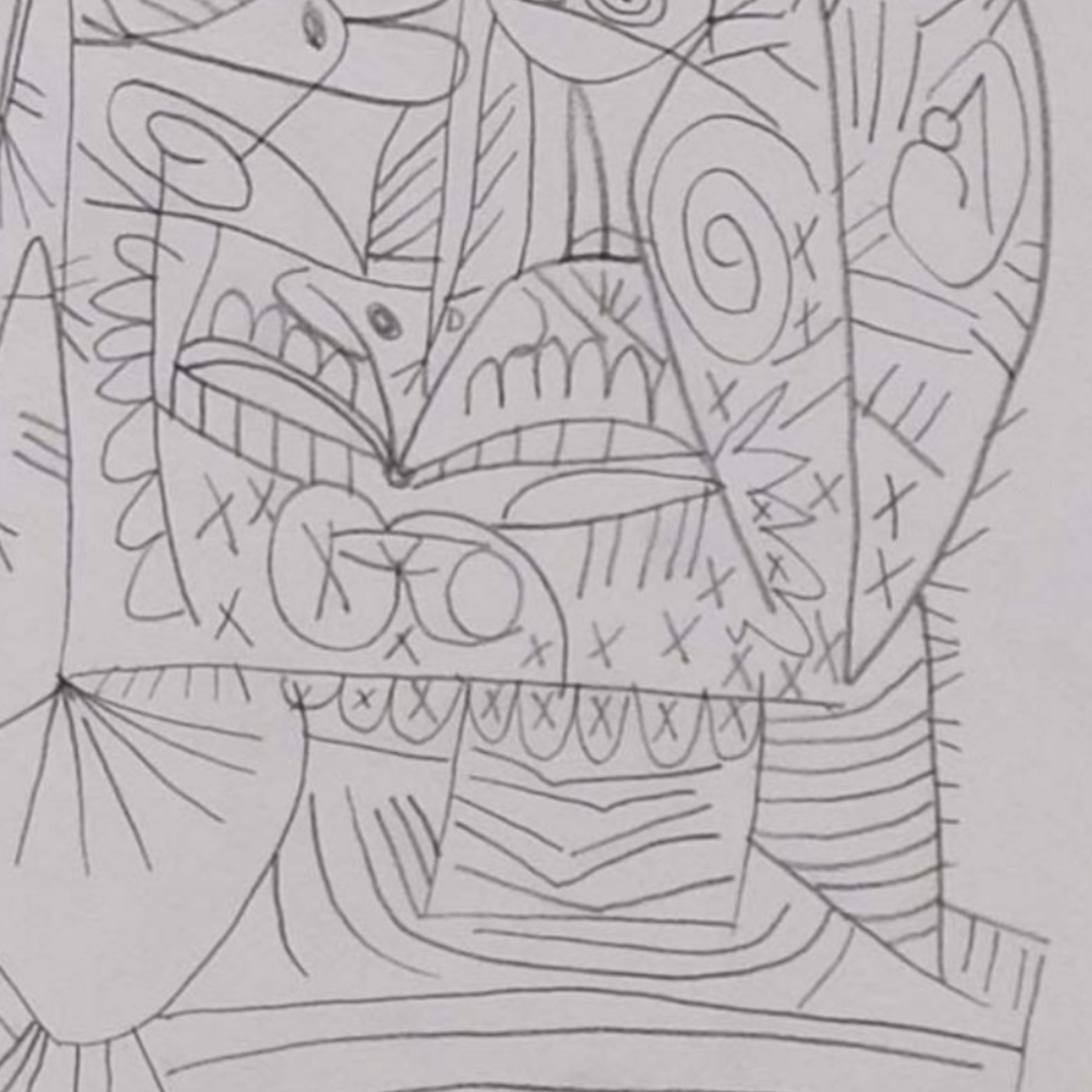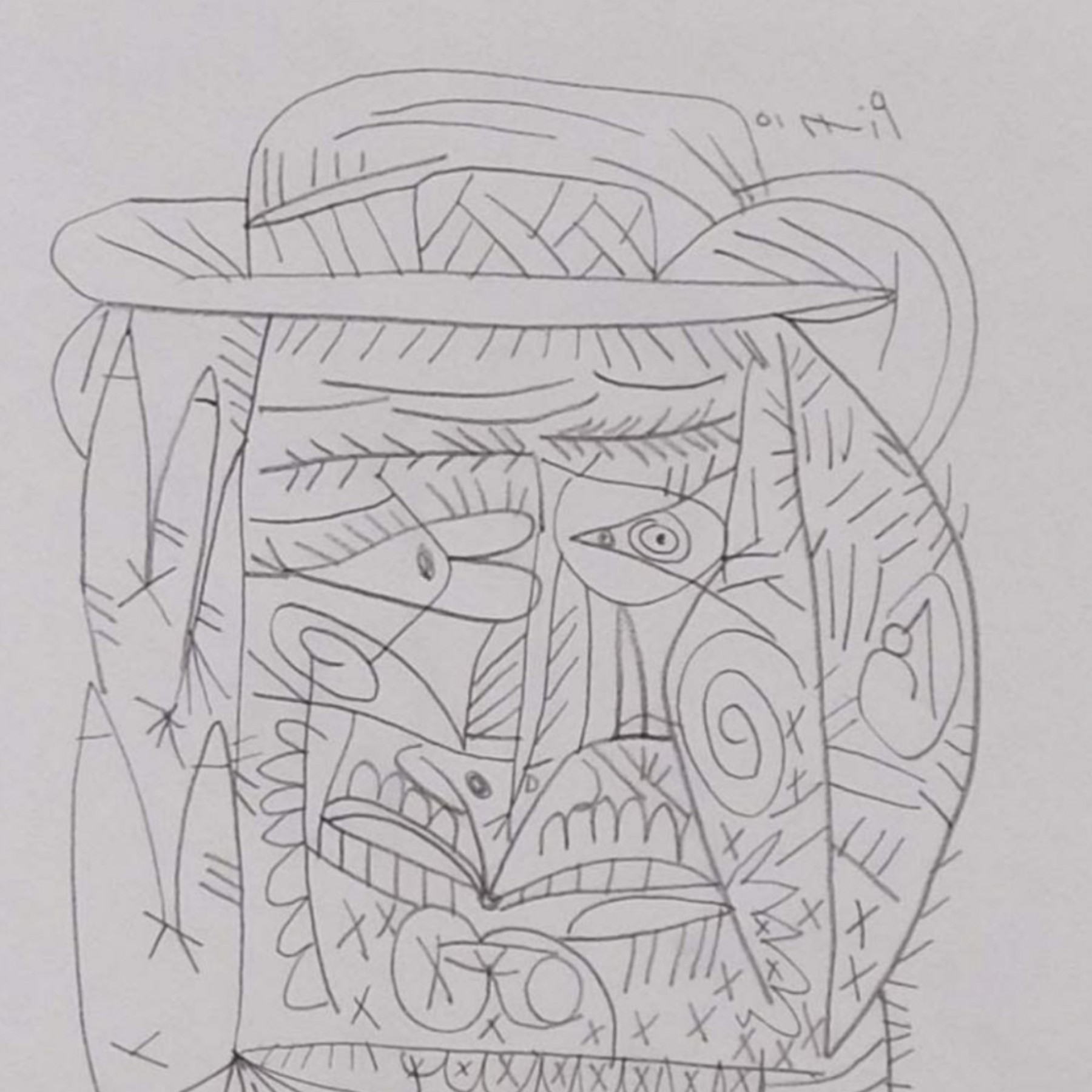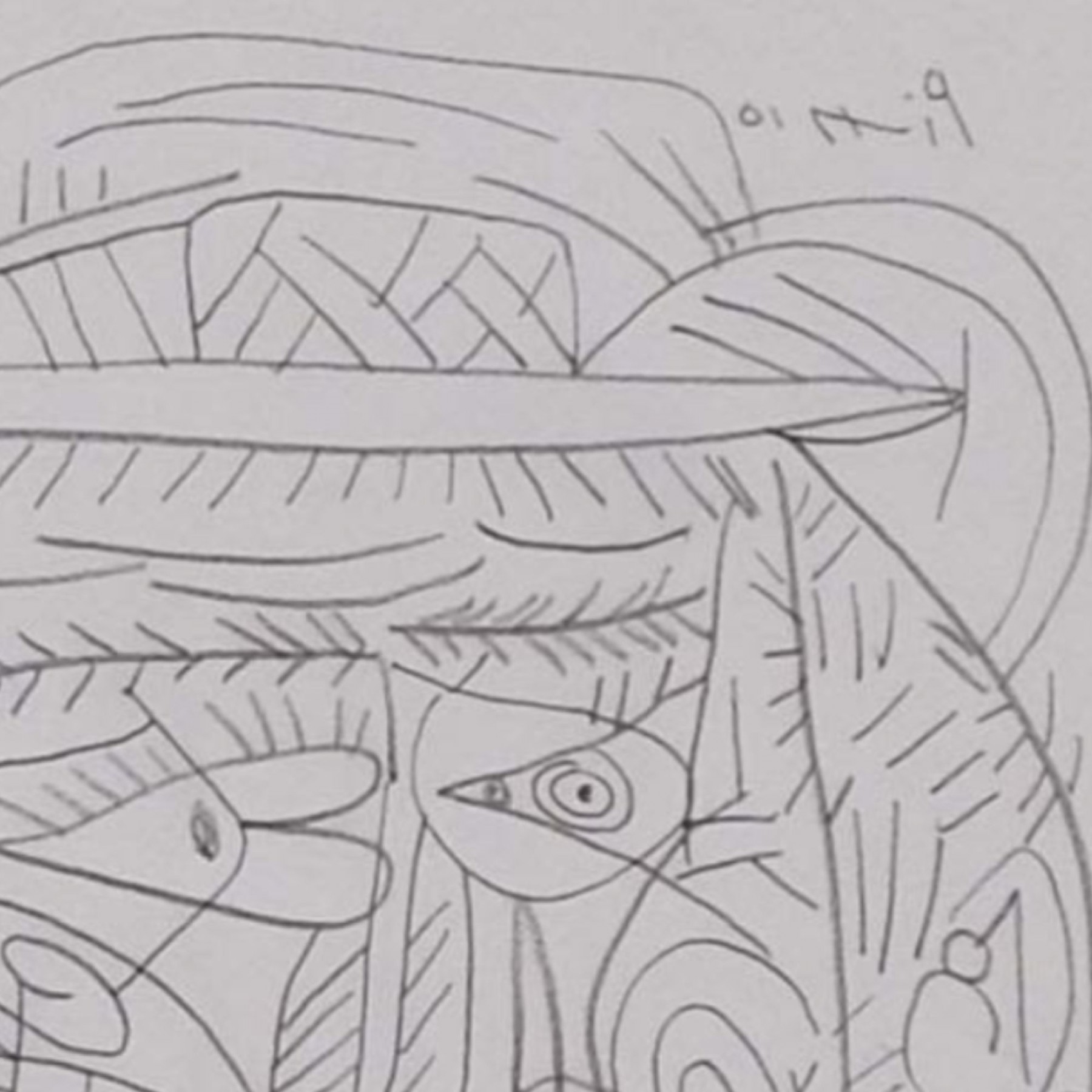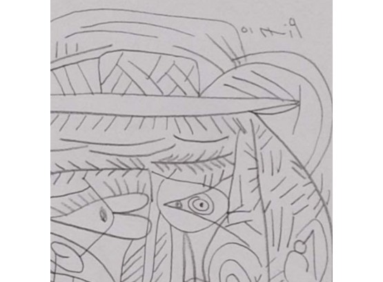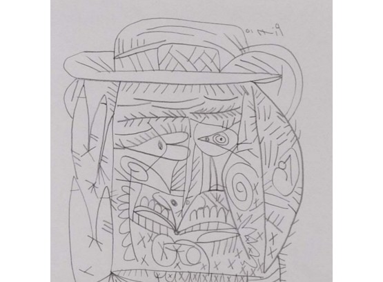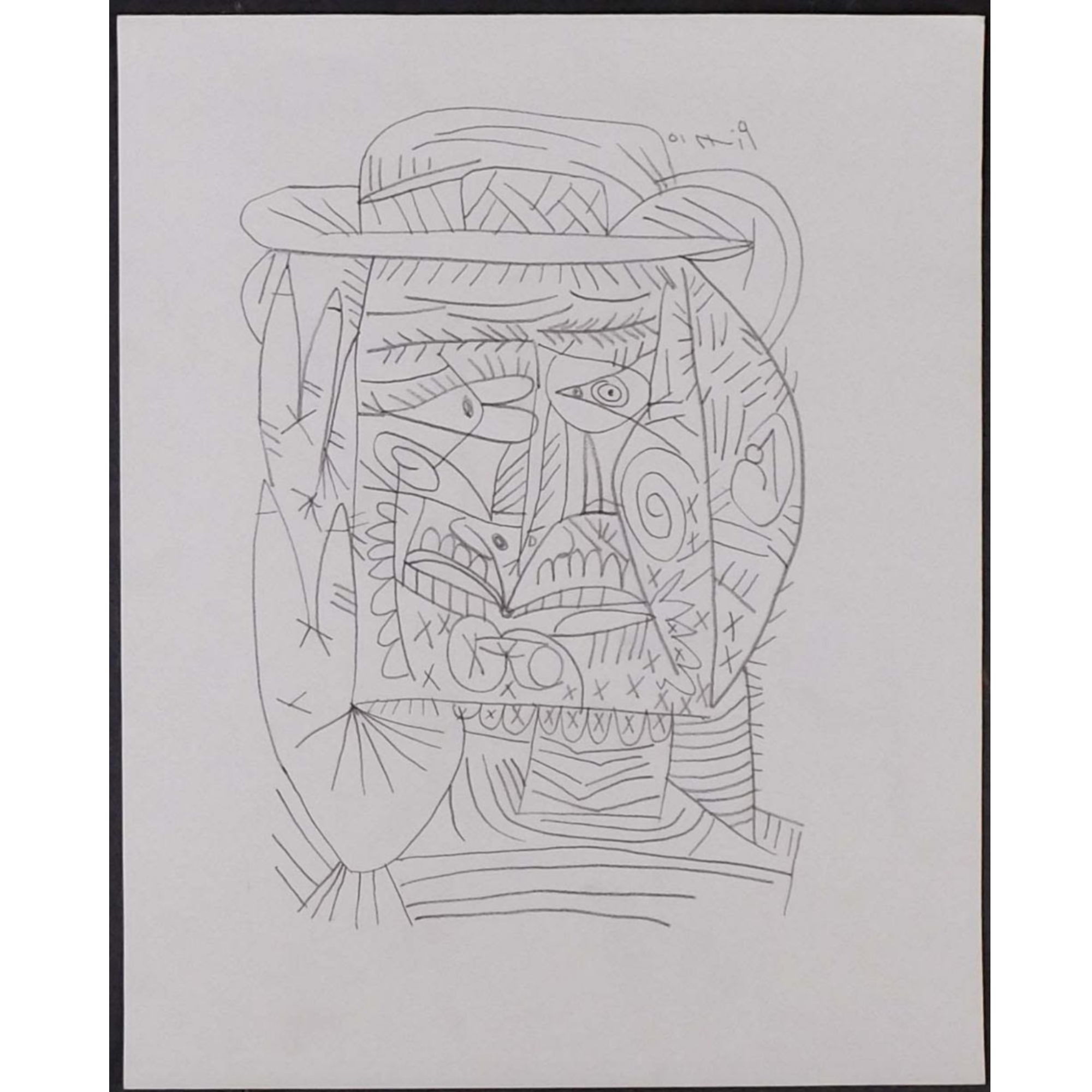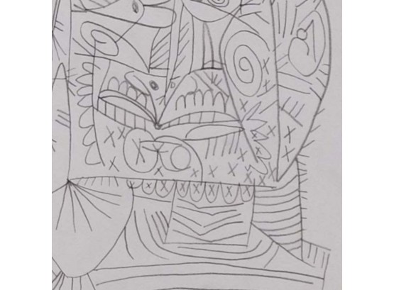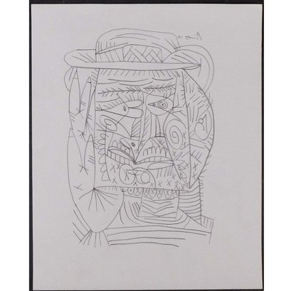"Pablo Picasso (Spanish, 1881-1973) Manner of: Angry Face. Graphite drawing on paper, signed in pencil upper left, unframed.
