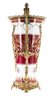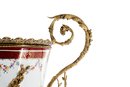 The vase's vivid red backdrop serves as the perfect canvas for its hand-painted flower motif. Each petal is meticulously rendered in shades of red, white, and gold, creating a visual tapestry that resonates with both traditional and contemporary aesthetics.