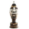 This remarkable vase is a testament to both craftsmanship and artistry, standing at 25 inches in height. Its incredibly detailed handles exemplify femininity and grace, adding an extra layer of elegance to the piece.