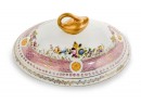 The pastel pink color of the Tureen Set exudes a soft and delicate beauty, creating a captivating backdrop for the hand-painted details that adorn its surface. The set features a delightful flower motif, skillfully rendered with meticulous brushstrokes and pops of shimmering gold accents. Each stroke is a testament to the artist's dedication and talent, resulting in a truly remarkable work of art.