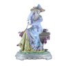 Crafted in a classical Rococo style, the figurine is a testament to the mastery of the artisan. Every detail has been lovingly rendered, from the intricacies of her dress folds to the delicate contours of her features. The scene is a snapshot of a serene moment, evoking a sense of nostalgia for an era where elegance and sophistication were revered.