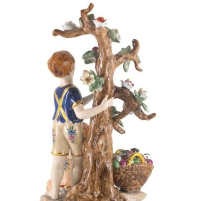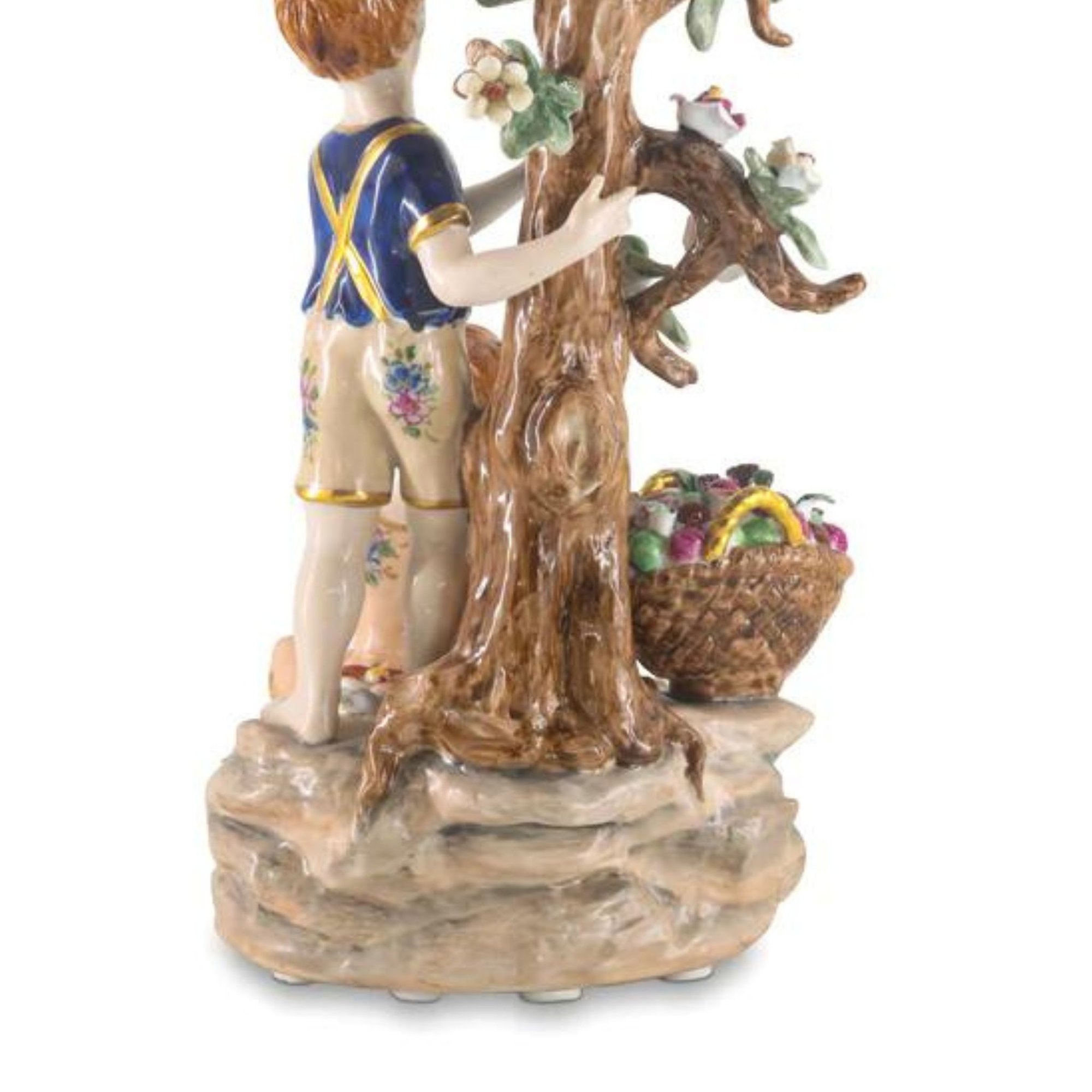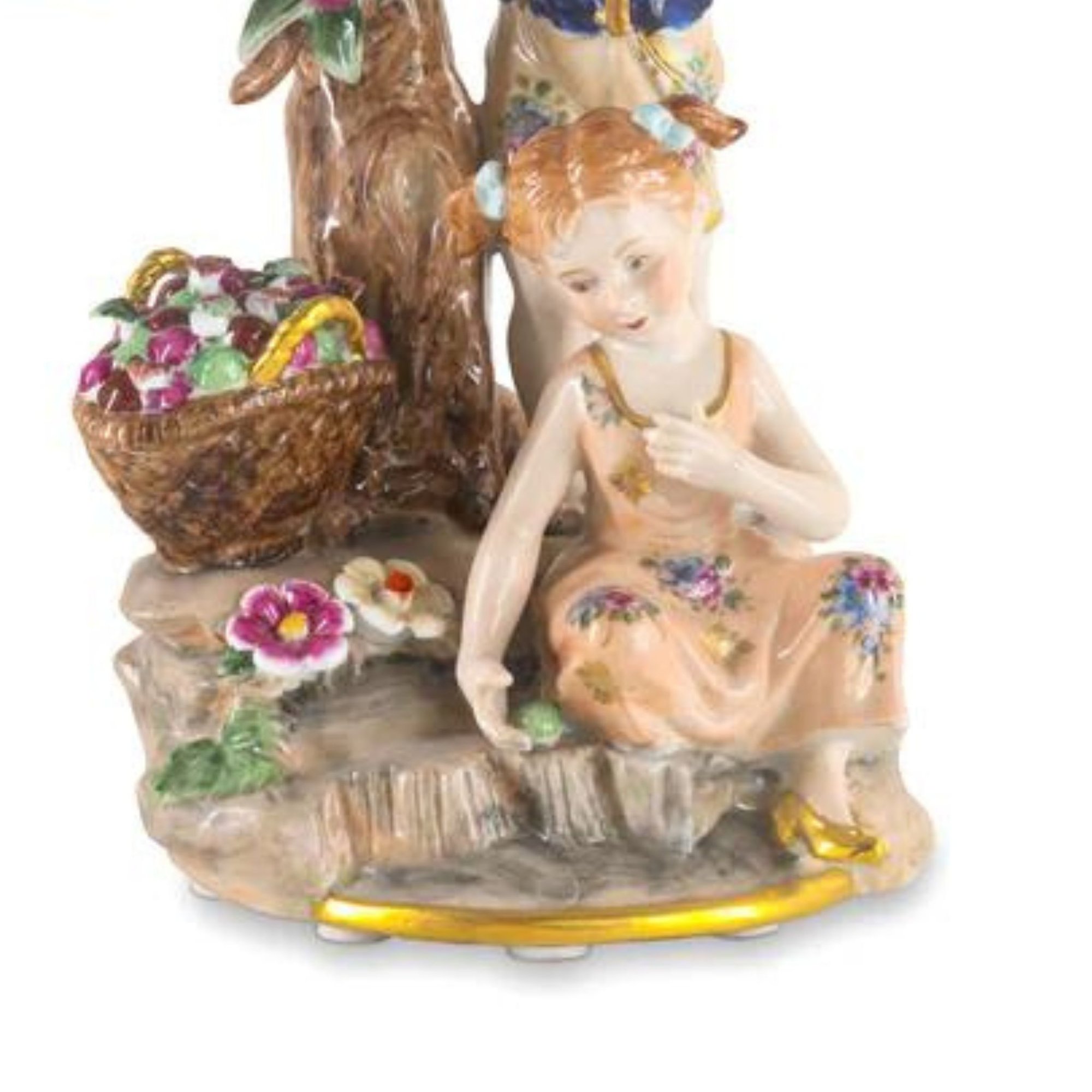 Indulge in the enchanting allure of this exquisite porcelain figurine, a delightful and elegant embodiment of Rococo charm. Immerse yourself in the world of timeless elegance as intricately hand-painted porcelain figures come to life, depicting children joyfully playing amidst the beauty of nature.