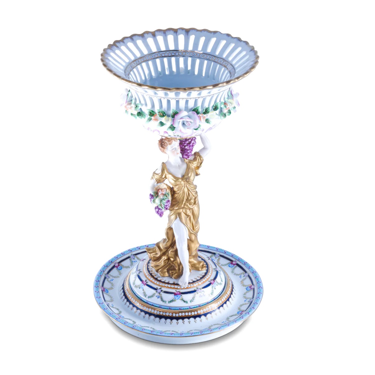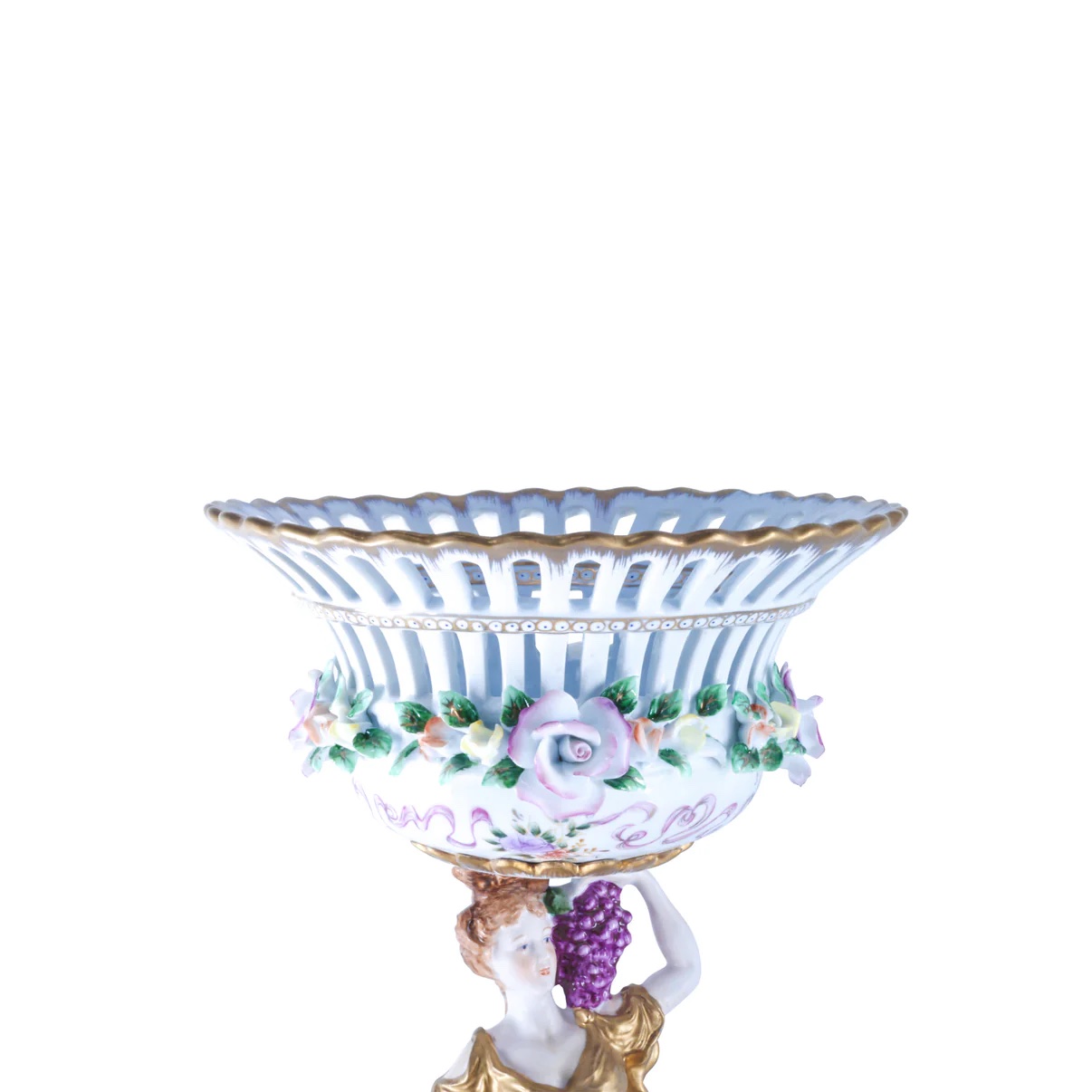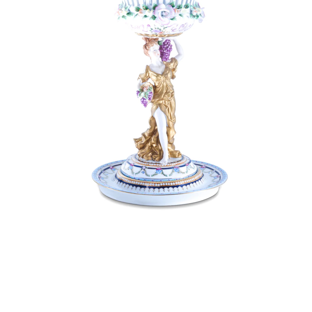 Crafted with impeccable attention to detail, the base features a porcelain figure of a muse, delicately holding grapes, creating a poetic connection between art and nature. The muse's presence adds a divine touch to this extraordinary piece, representing inspiration and creativity.