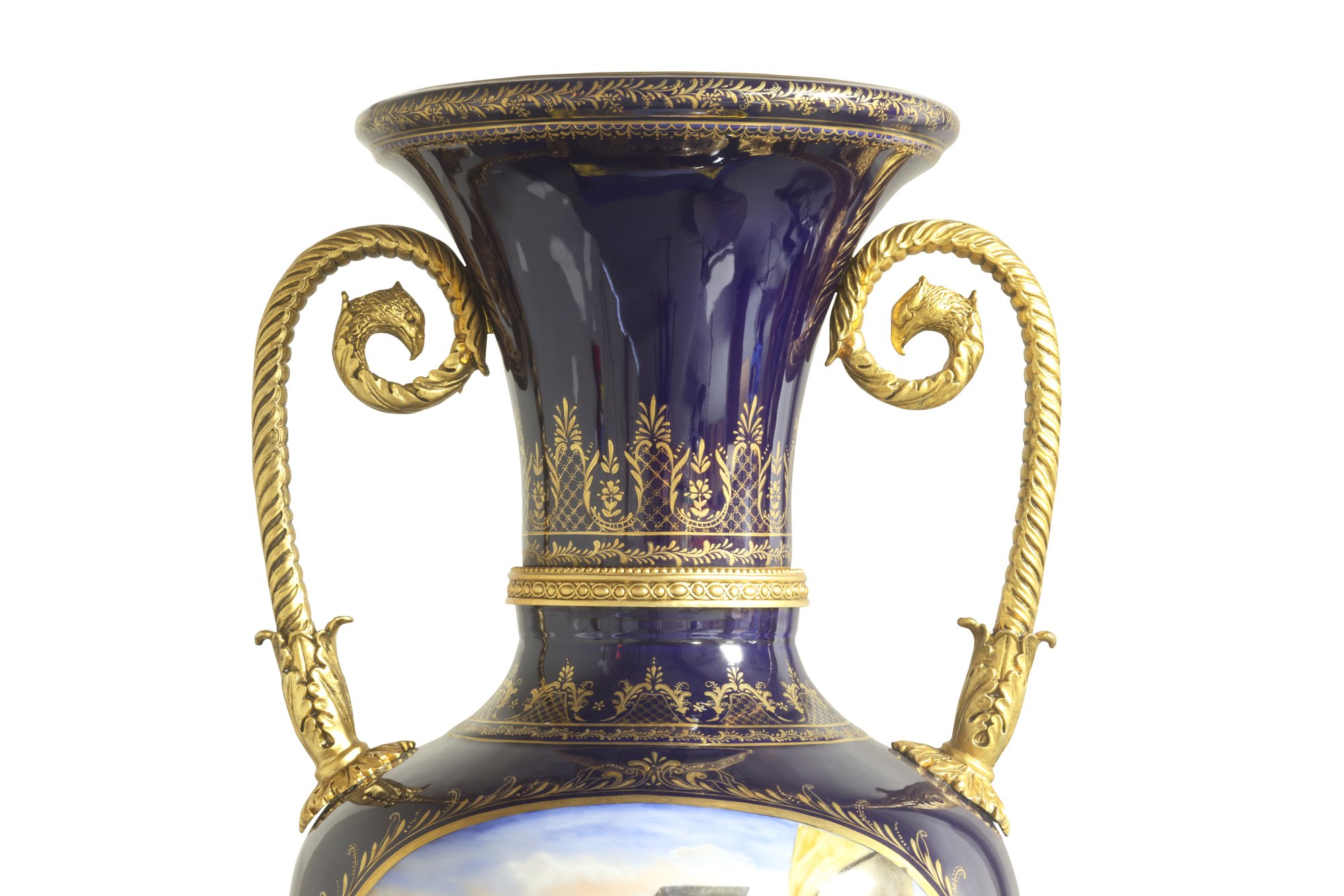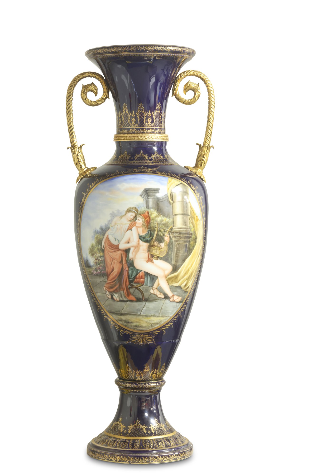 Completely painted by hand and composed of porcelain with bronze details, this vase is more than a functional piece; it's a conversation starter and a work of art. Whether displayed as a centerpiece or used to hold flowers, it's sure to become a cherished heirloom.