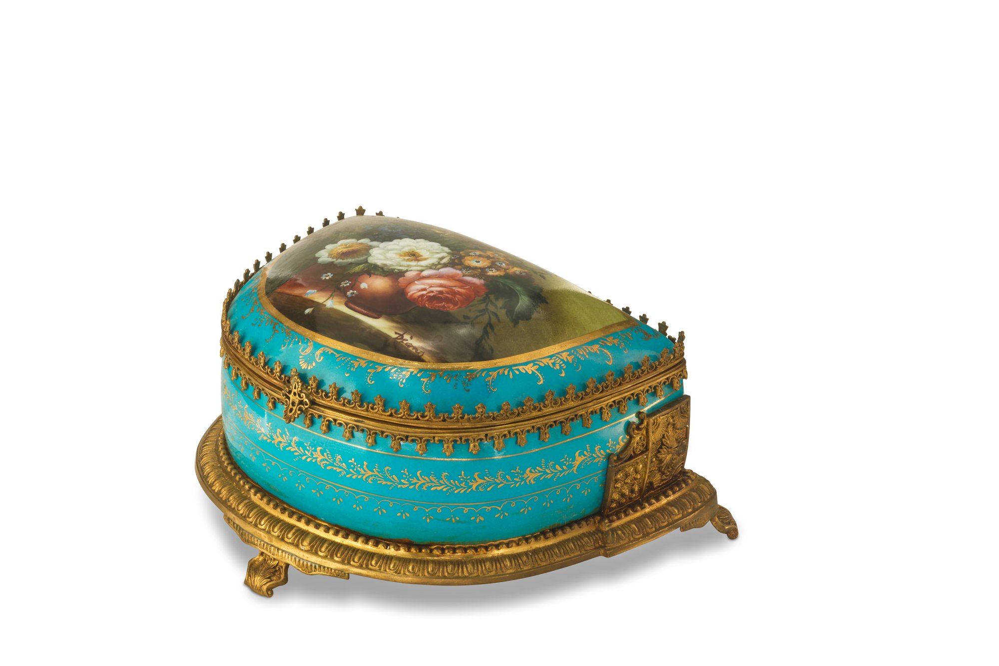 This storage jar is more than just a box; it is an heirloom-quality creation that elevates any room it graces. The bronze base of the jar highlights a natural motif, infusing it with a touch of nature's charm. The light blue hue serves as the perfect backdrop for the intricate floral elements and delicate gold highlights, creating a visual symphony of elegance.