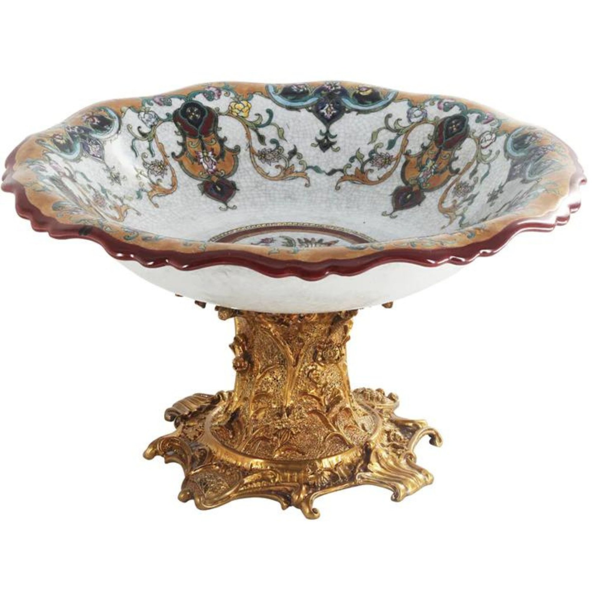 Experience the seamless fusion of elegance and functionality with the Hand-Painted Porcelain and Bronze Decorative Fruit Bowl, a true masterpiece of design and craftsmanship. This exquisite piece is more than just a bowl; it is an embodiment of timeless beauty and enduring utility.