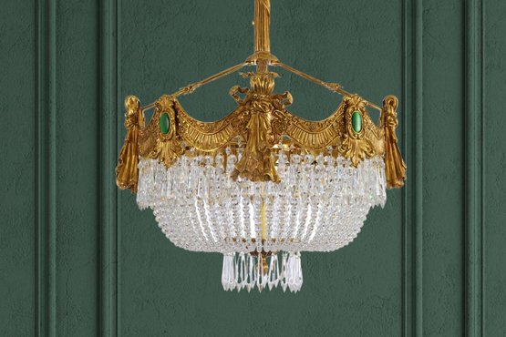 Elevate your space with the timeless beauty and majesty of this French Empire-inspired chandelier. Its exquisite craftsmanship and captivating design will transform any room into a regal sanctuary of light and luxury.