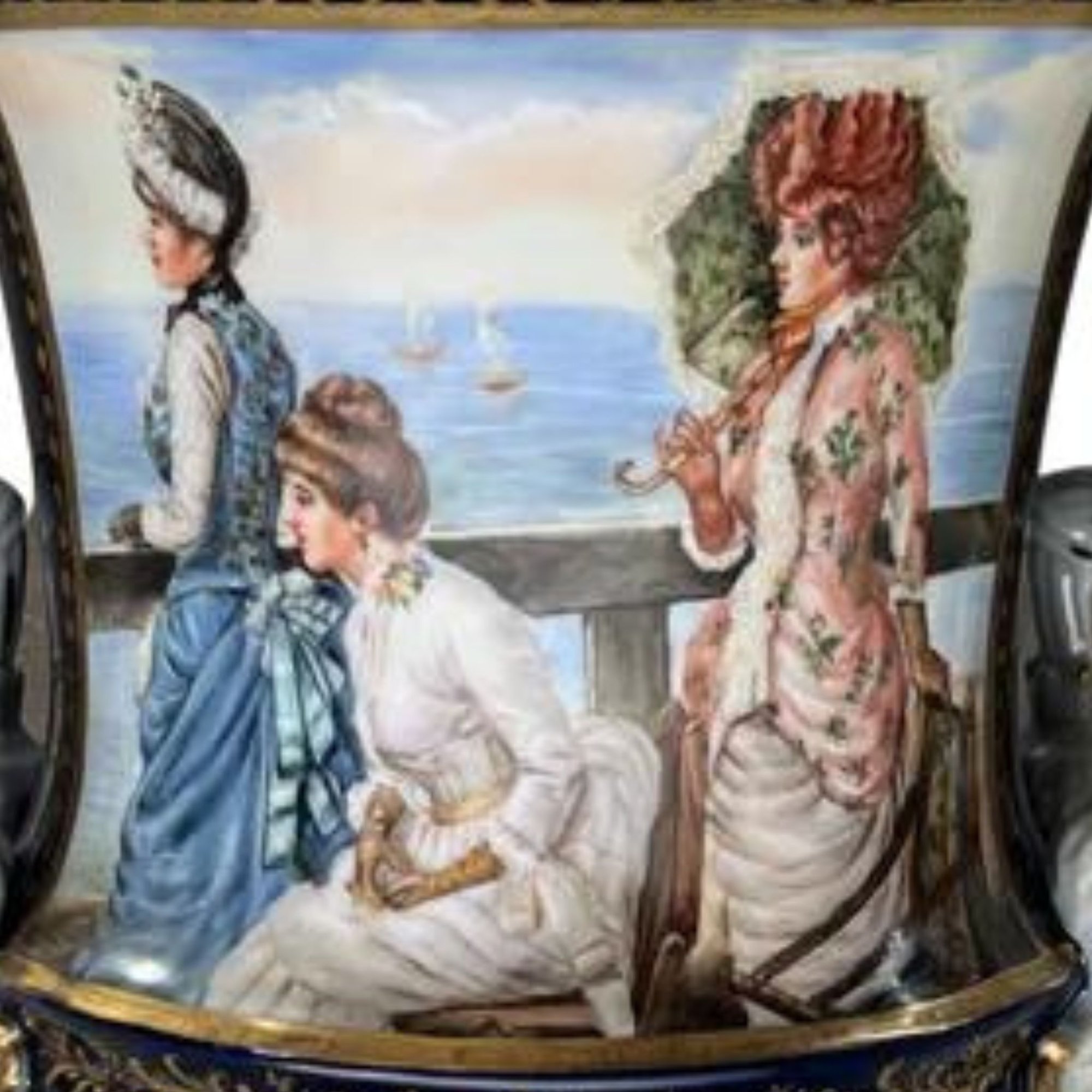 The harmonious blend of dark blue and white hues sets the stage for the captivating Rococo motif. Each side of the pot unveils a different narrative, where society figures in period attire engage in lively interactions against the backdrop of meticulously painted natural landscapes and architectural wonders. It's a journey back in time, where each scene tells a story of elegance and charm.