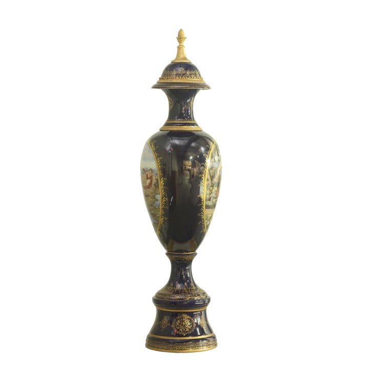 The heart of this jar lies in the classical Rococo scene it beautifully portrays. The canvas comes alive with figures gracefully set against a mesmerizing natural backdrop, a delicate dance of nature and humanity captured in porcelain.