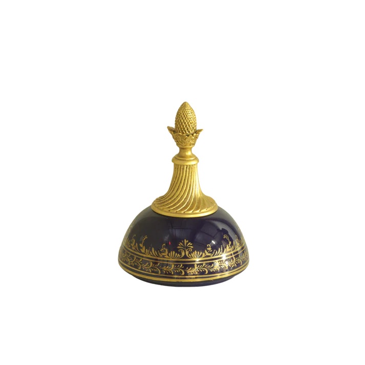 Introducing a captivating masterpiece – a porcelain jar drenched in a striking Blue shade, exuding radiance from every angle. Painstakingly hand-painted, this piece stands as a testament to the artistry and elegance of timeless design. From its ornate circular base that grounds its presence, to the graceful flair of its stem, every detail narrates a story of dedication and finesse.