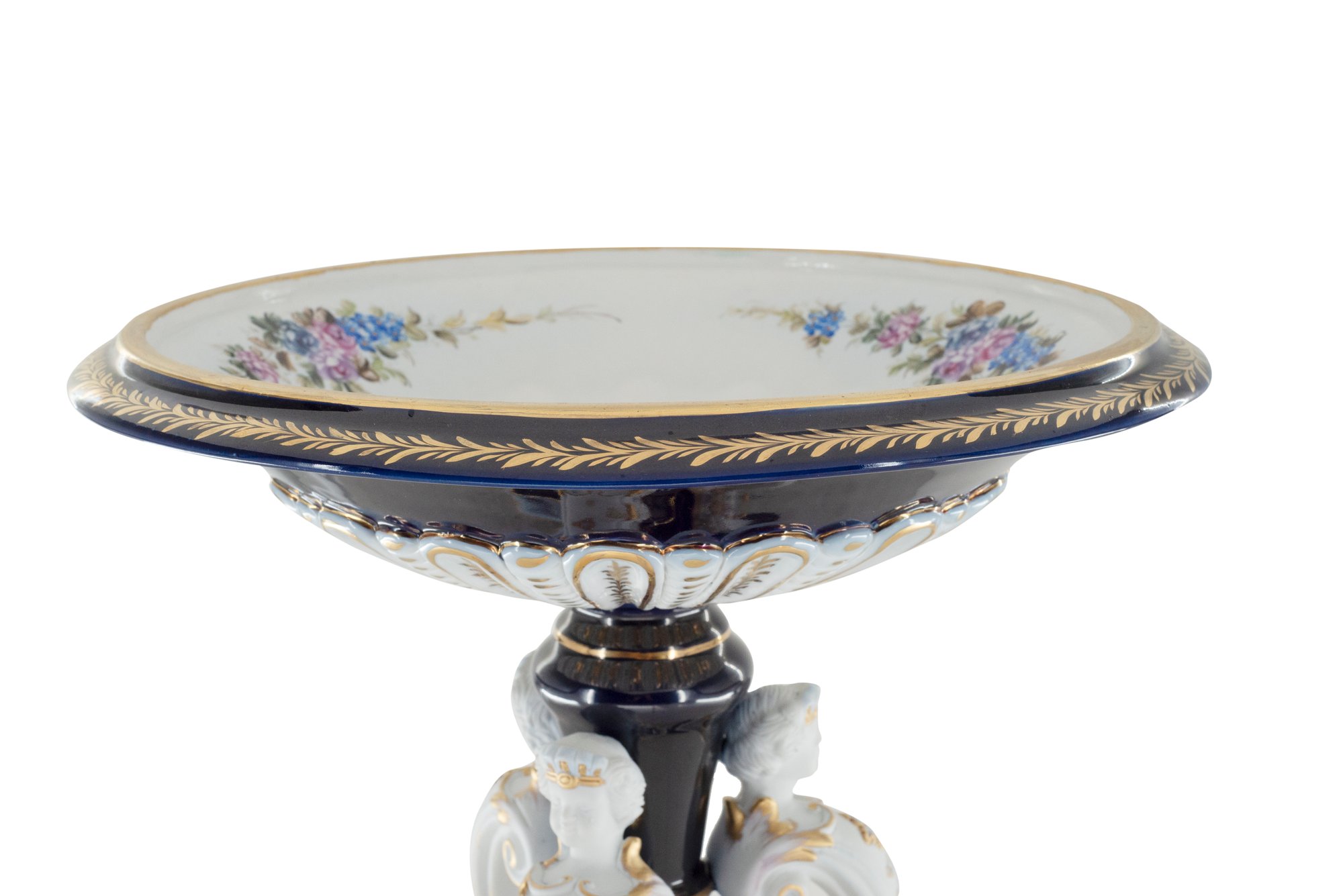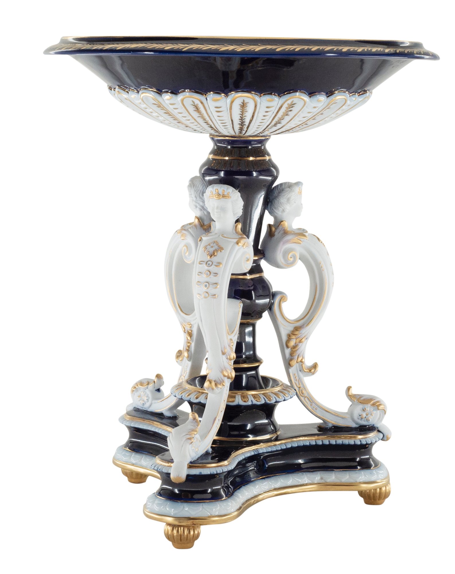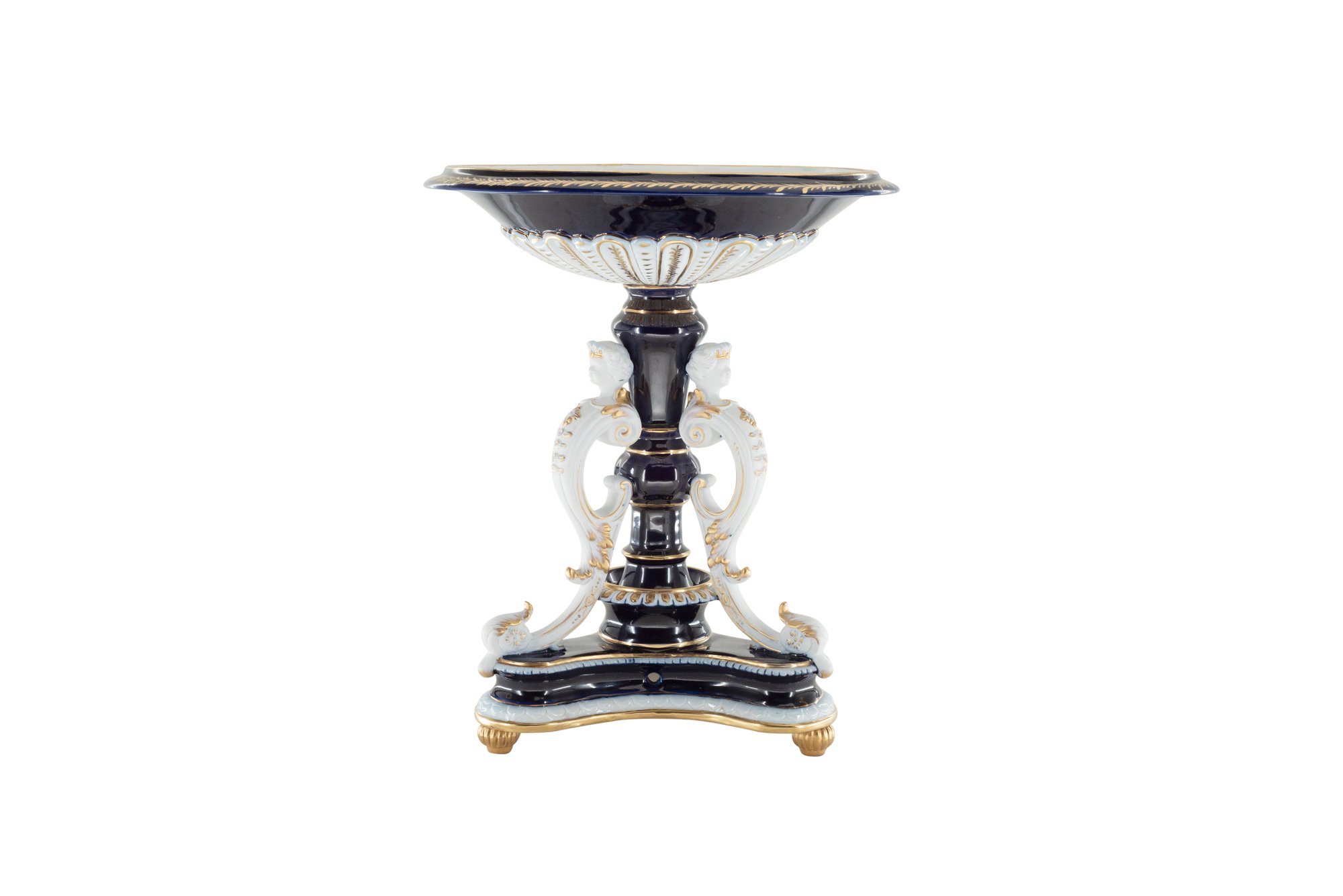 This exquisite hand-painted Merman Porcelain Serving Bowl offers an ideal way to dress up dinnerware. Crafted from porcelain with a classic blue hue and gold accents, the bowl features a floral motif and highly detailed merman figure reliefs, adding a unique and timeless touch to any tabletop. Its intricate design and fine craftsmanship make this bowl an elegant piece of art that will bring a sense of luxury to your dining experience.