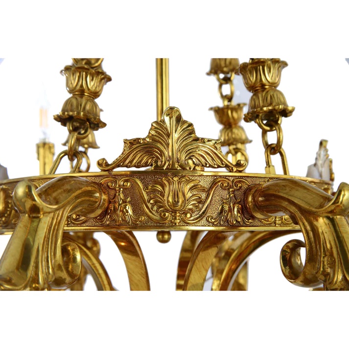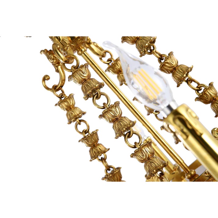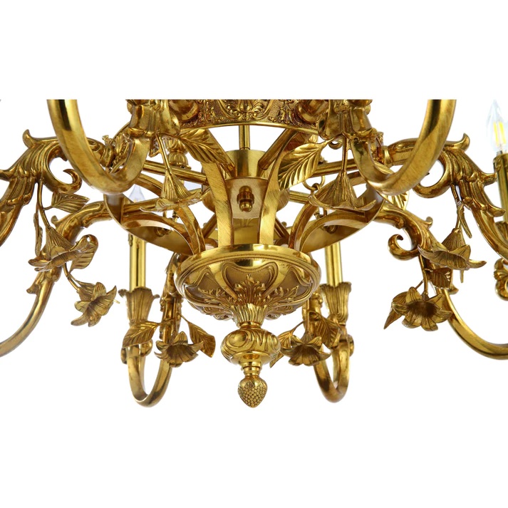 Crafted from high-quality brass, this chandelier embodies the classic design elements synonymous with chandeliers, featuring elegant scroll bobeches and regal chains that exude opulence. However, what sets this chandelier apart is its incorporation of natural elements, including intricate bronze flowers that add a touch of nature's beauty to its overall aesthetic.