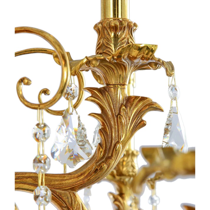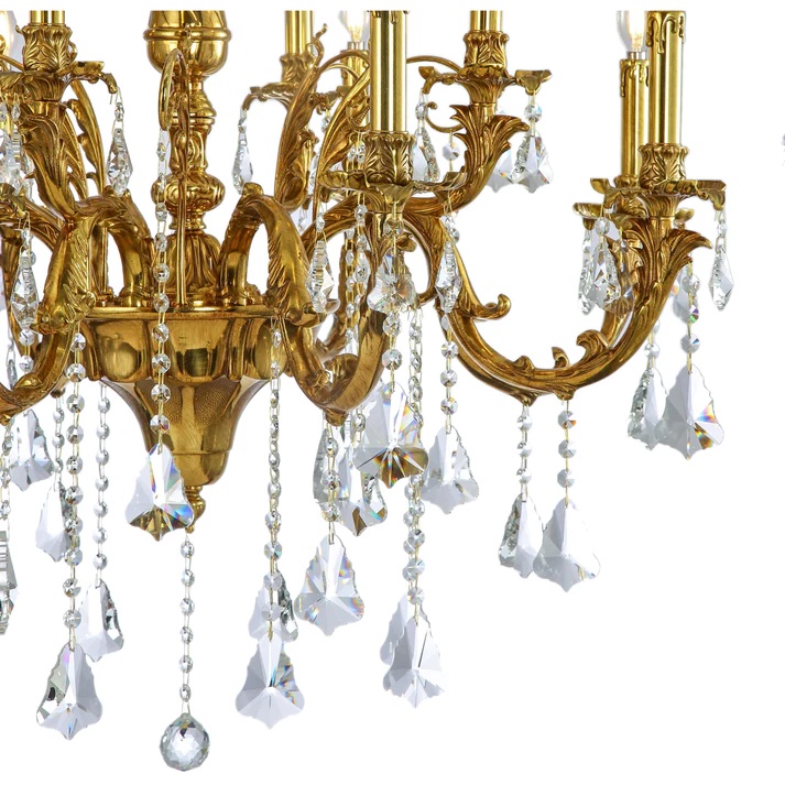 With an impressive 12 lights, this chandelier provides ample illumination while serving as a statement piece in your decor. Crafted from premium materials, including brass and crystal, it embodies both visual allure and durability.