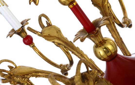 Finished in an eye-catching red hue, the chandelier stands as a blend of classic and contemporary. This bold choice of color adds a layer of intrigue, inviting you to explore the interplay between tradition and modernity.