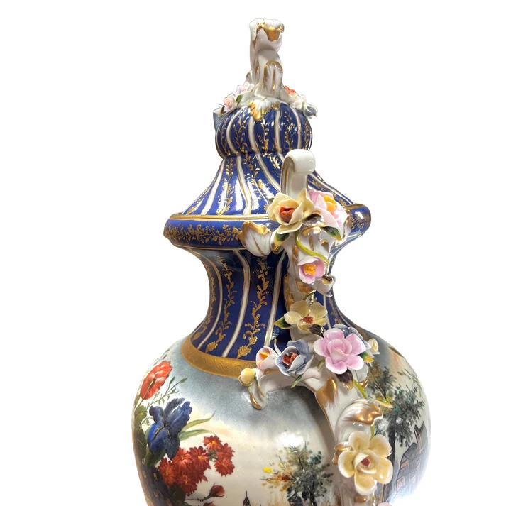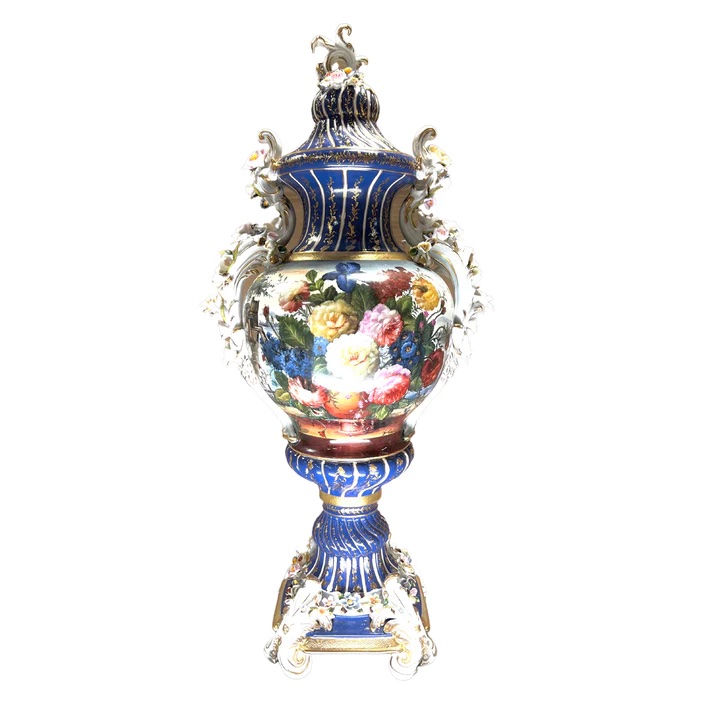 This urn isn't merely an object of decor but a time portal, offering glimpses of the Rococo era in all its glory. Let it be the centerpiece of your collection, a testament to beauty, history, and craftsmanship combined.
