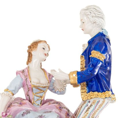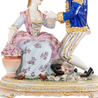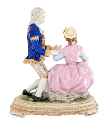 Capture the essence of romance with this exquisite porcelain figurine, a timeless representation of a proposal in progress. Crafted with meticulous attention to detail, this piece is more than just a figurine; it's a celebration of love, commitment, and the artistry of the Rococo era.