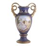 Adorning the vase's form is a hand-painted Rococo motif, a masterpiece brought to life with skilled precision. The motif unfolds in a captivating interplay of blue, yellow, and red, weaving a tale of vibrant elegance. Each hue contributes to a symphony of visual delight, and the artistry resonates from every angle.