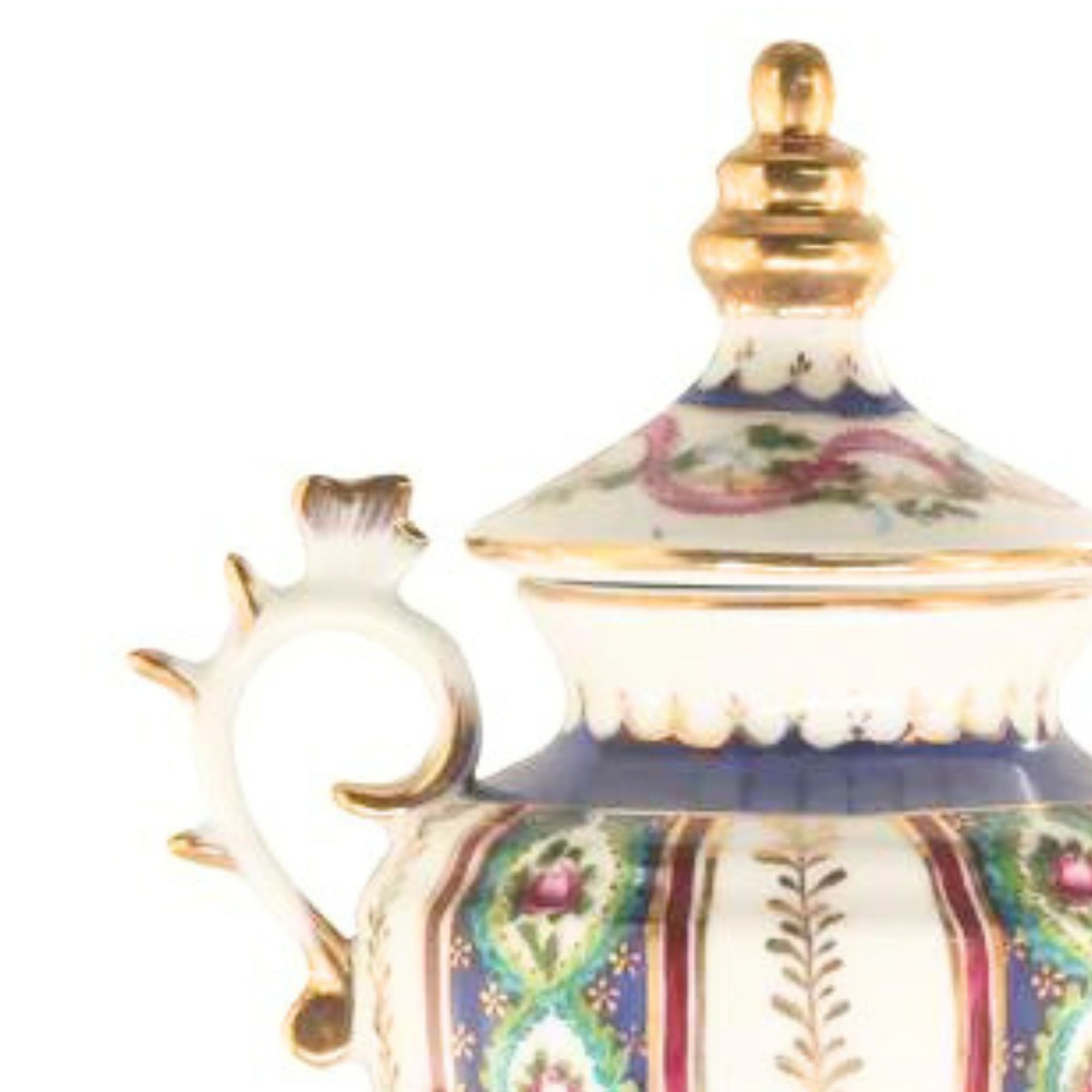 The striking blue color of the jar is an instant attention-grabber, adding a touch of drama and depth to the piece. This blue canvas serves as the backdrop for a delicate floral motif, adding a touch of nature's beauty to the jar's design. The motif is an ode to the timeless charm of flowers, capturing their elegance and grace.