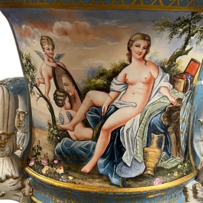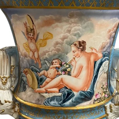 This extraordinary work of art is more than a pot; it's a portal to a bygone era of luxury and extravagance, an objet d'art that demands admiration and reverence. Whether displayed in a grand foyer, an opulent dining room, or as a focal point in a collector's enclave, the Large Society Krater Pot is a symphony of artistry and culture.