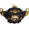 Prepare to be captivated by the sheer elegance of the Porcelain Tureen Set, a masterpiece that elevates dining to a royal affair. This beautiful set is a testament to artistry and opulence, adorned with incredibly detailed gold swan handles that exude regal charm.