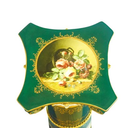 Porcelain Hand-Painted Pedestal, which encapsulate the grandeur and elegance of the 19th Century Baroque style. The pedestal stands as a testament to the unparalleled craftsmanship of the bygone era, echoing tales of sophistication and luxury.