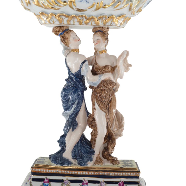 Embark on a journey through time with the Two Muses Decorative Bowl, a masterpiece that encapsulates the grace and opulence of the Rococo era. This captivating bowl showcases an intricate Rococo-style scene, brought to life by porcelain figures that weave a tale of timeless beauty.