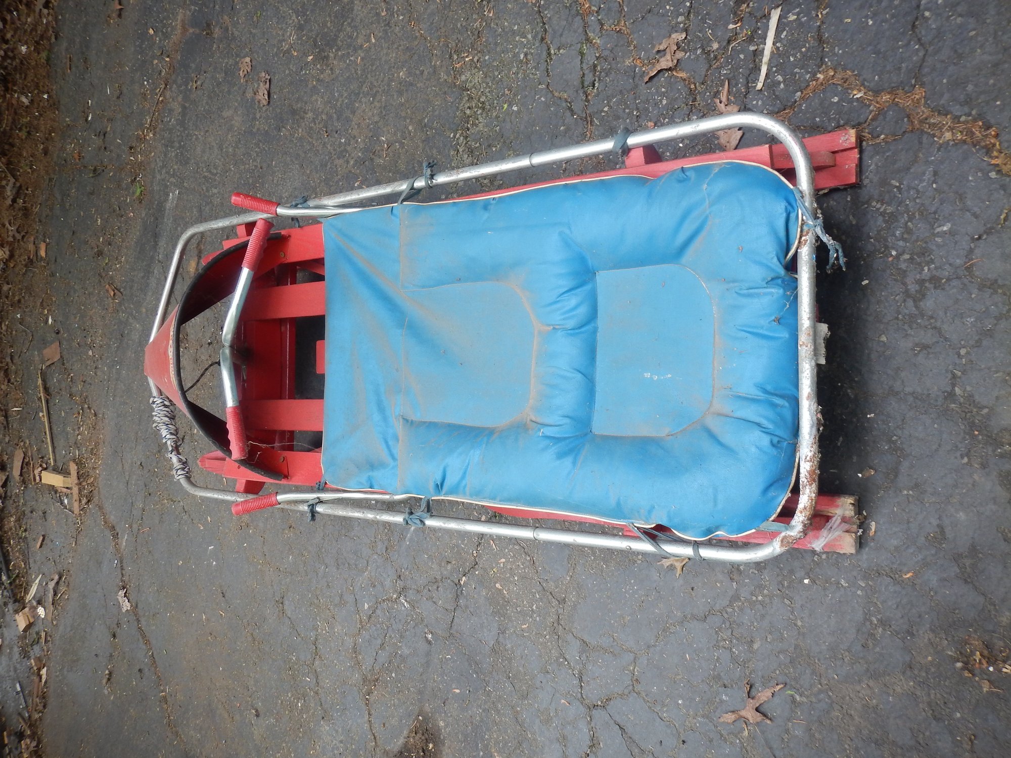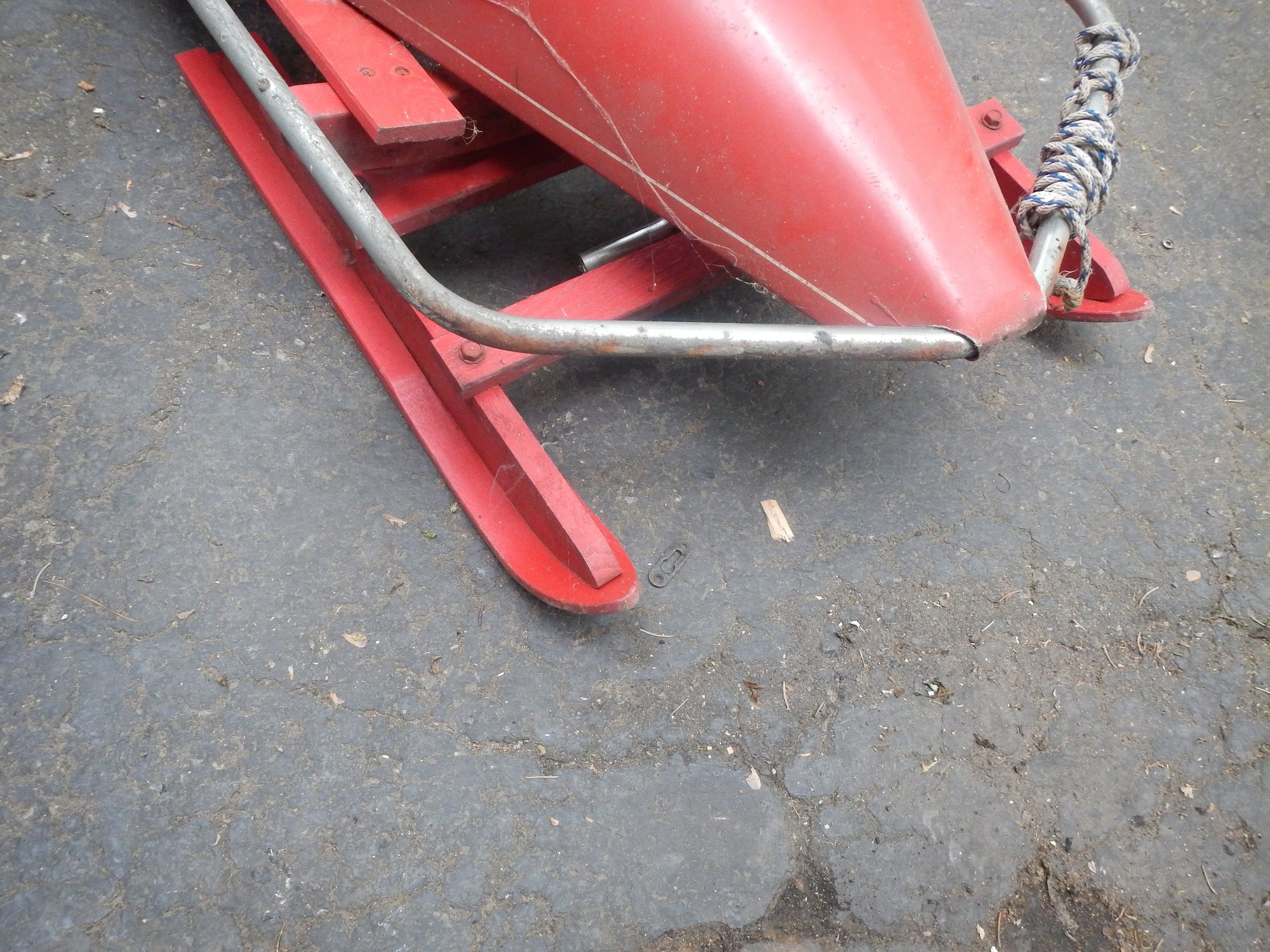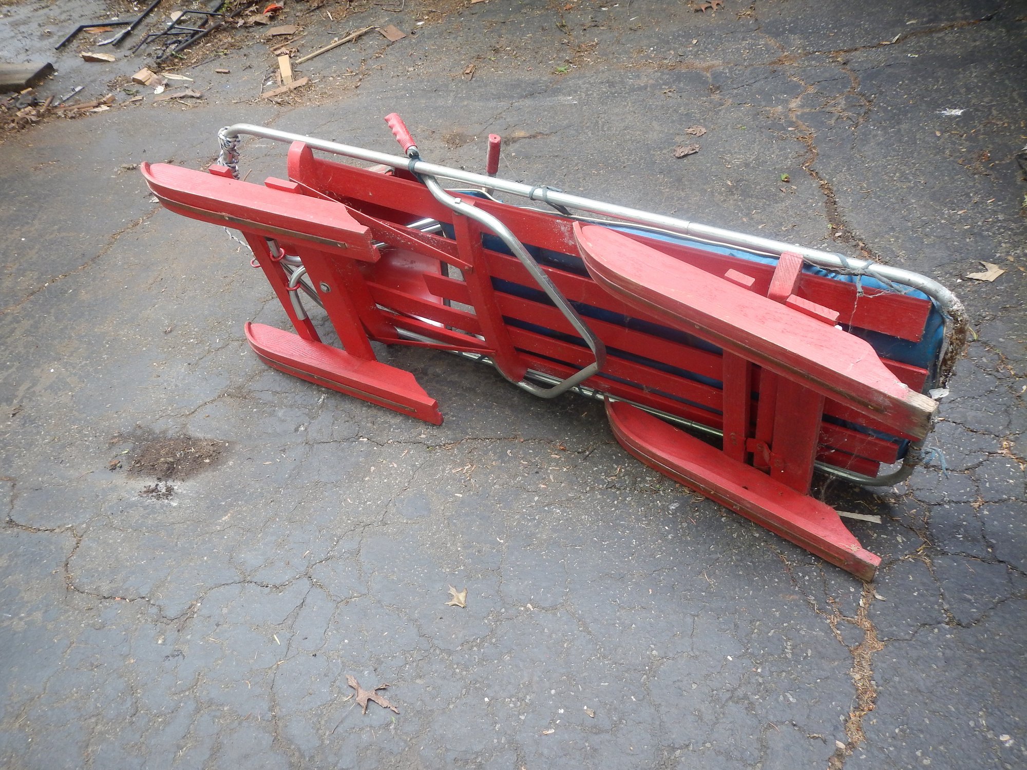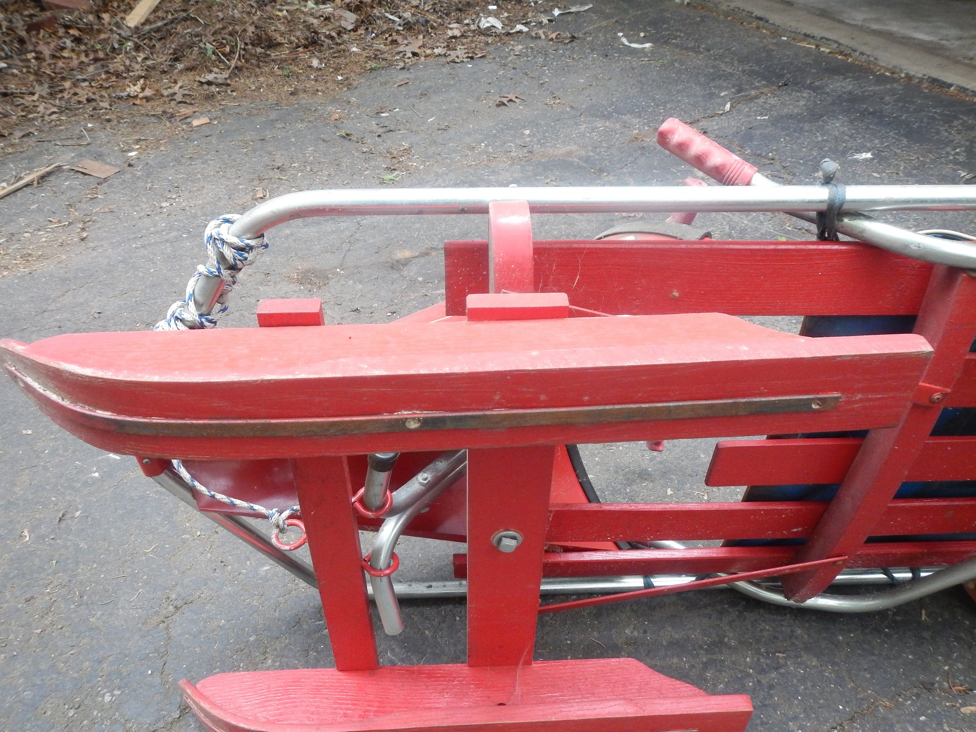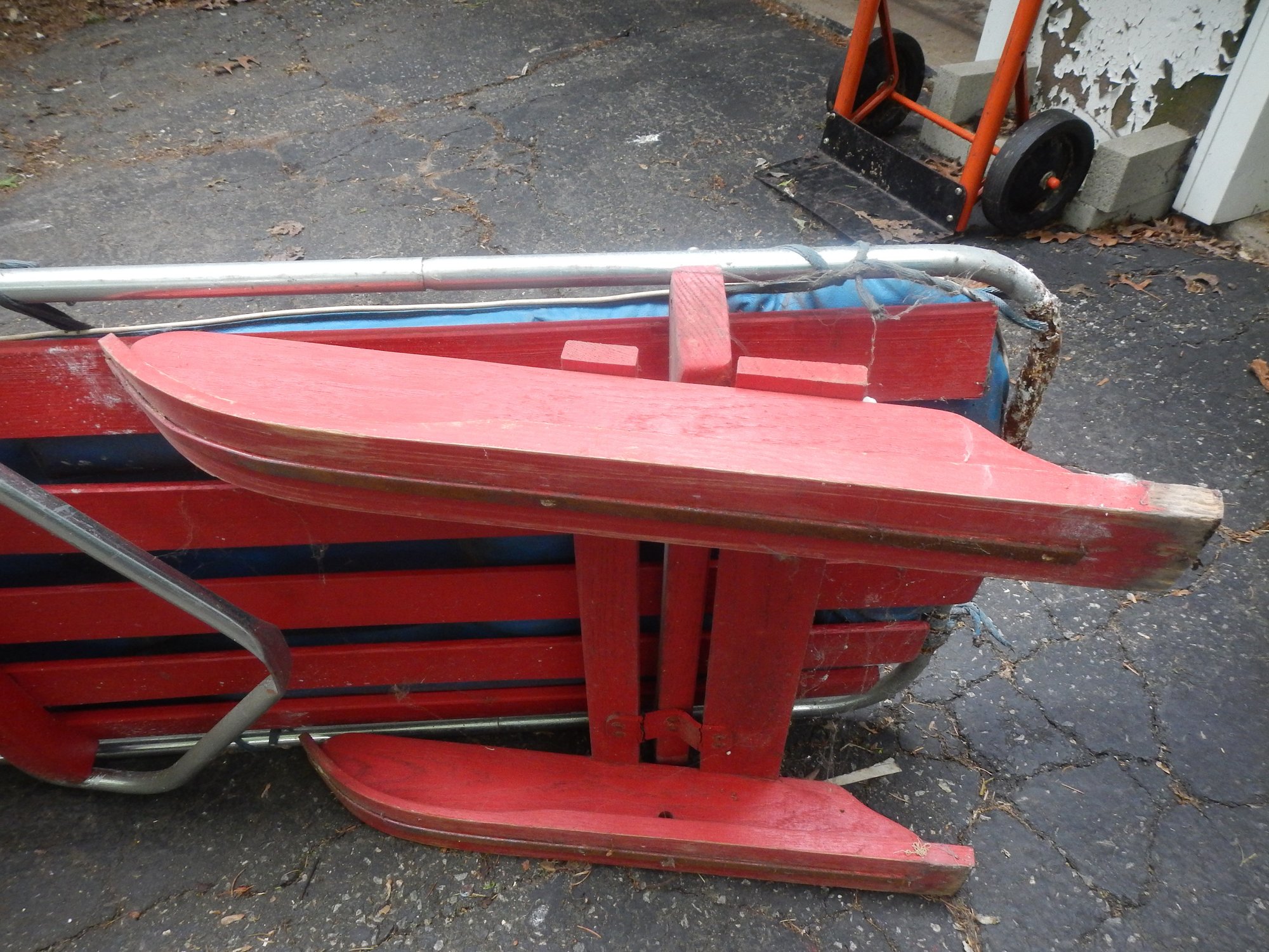 The Bob-O-Link bobsled is a classic vintage sled, known for its unique steering mechanism and "The Sled That Skis" slogan.