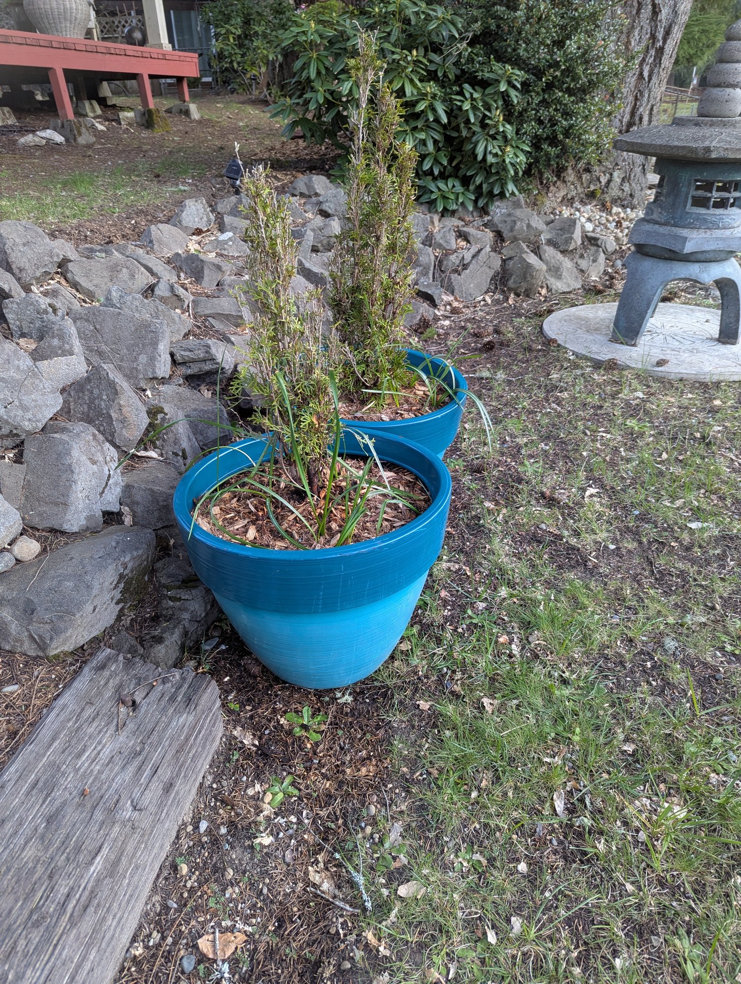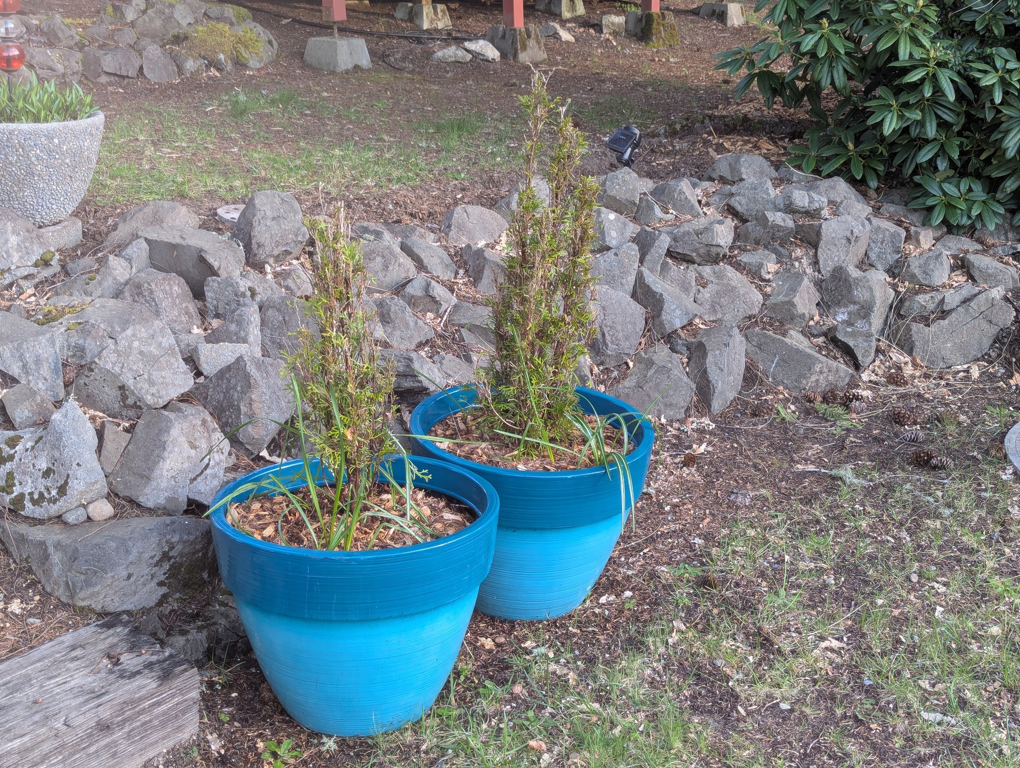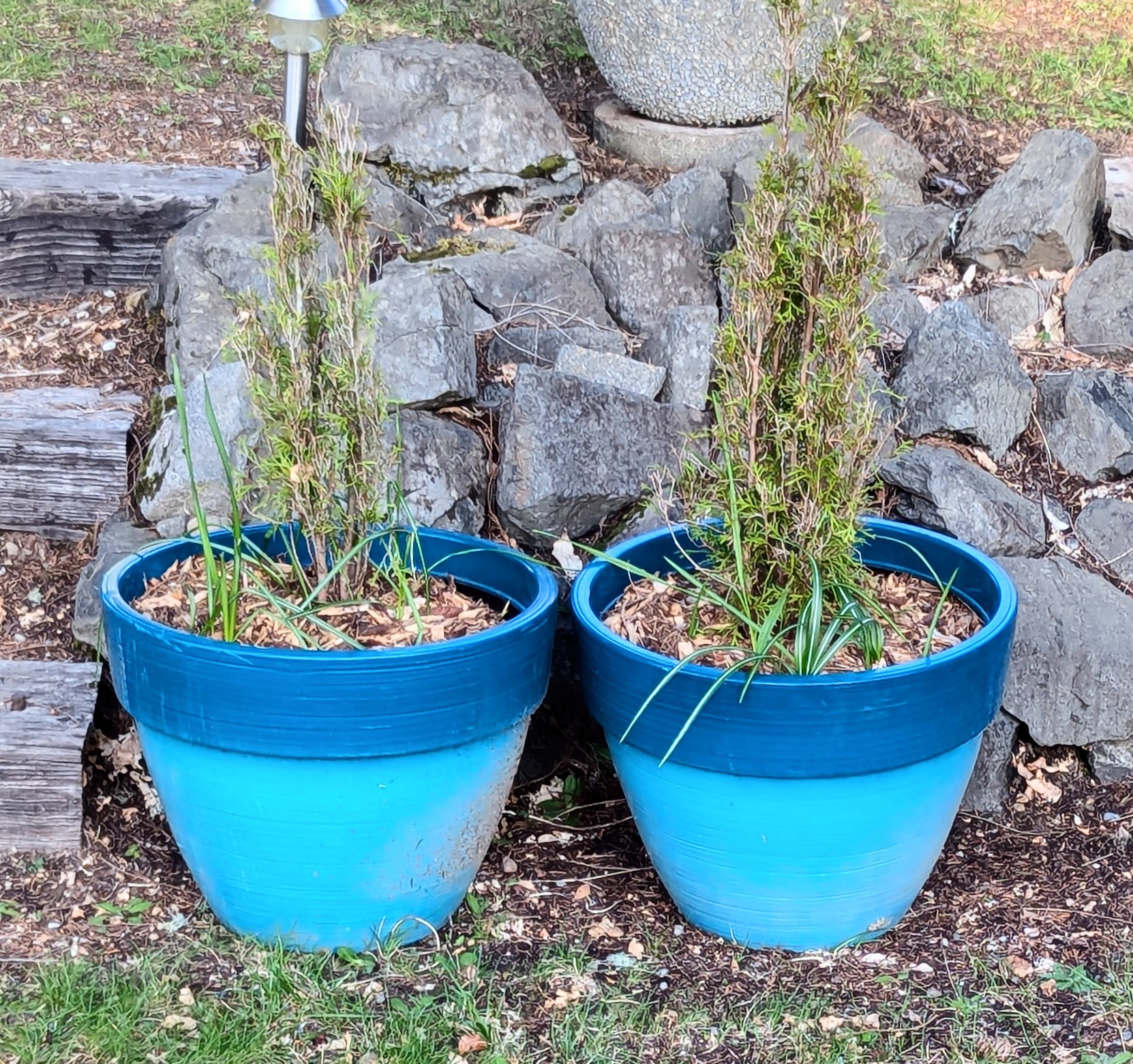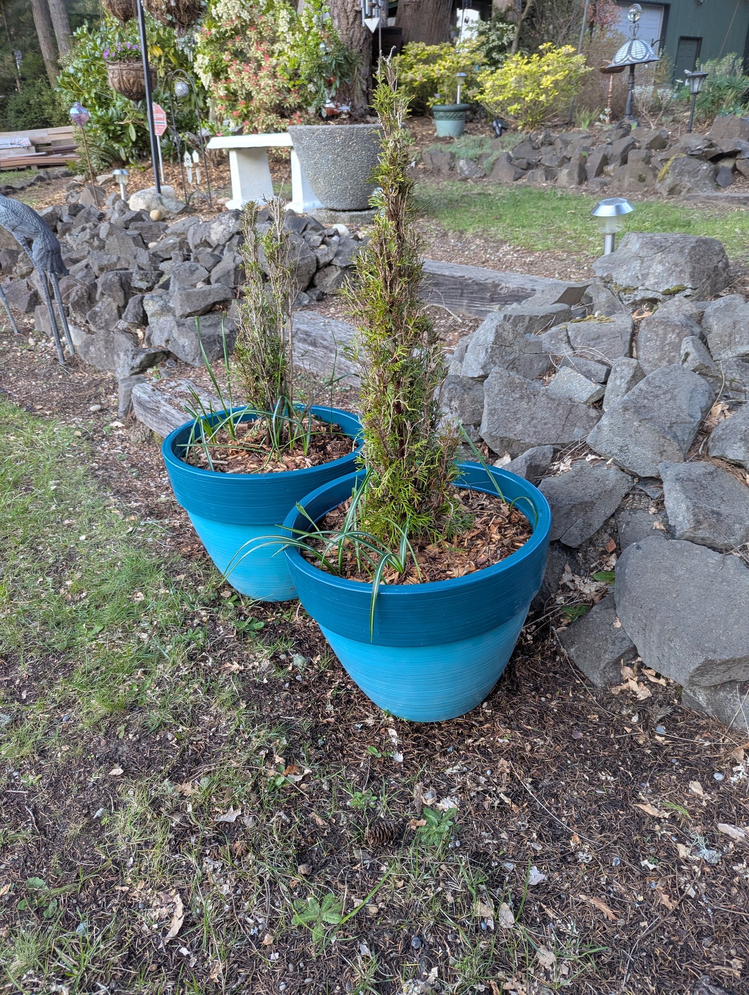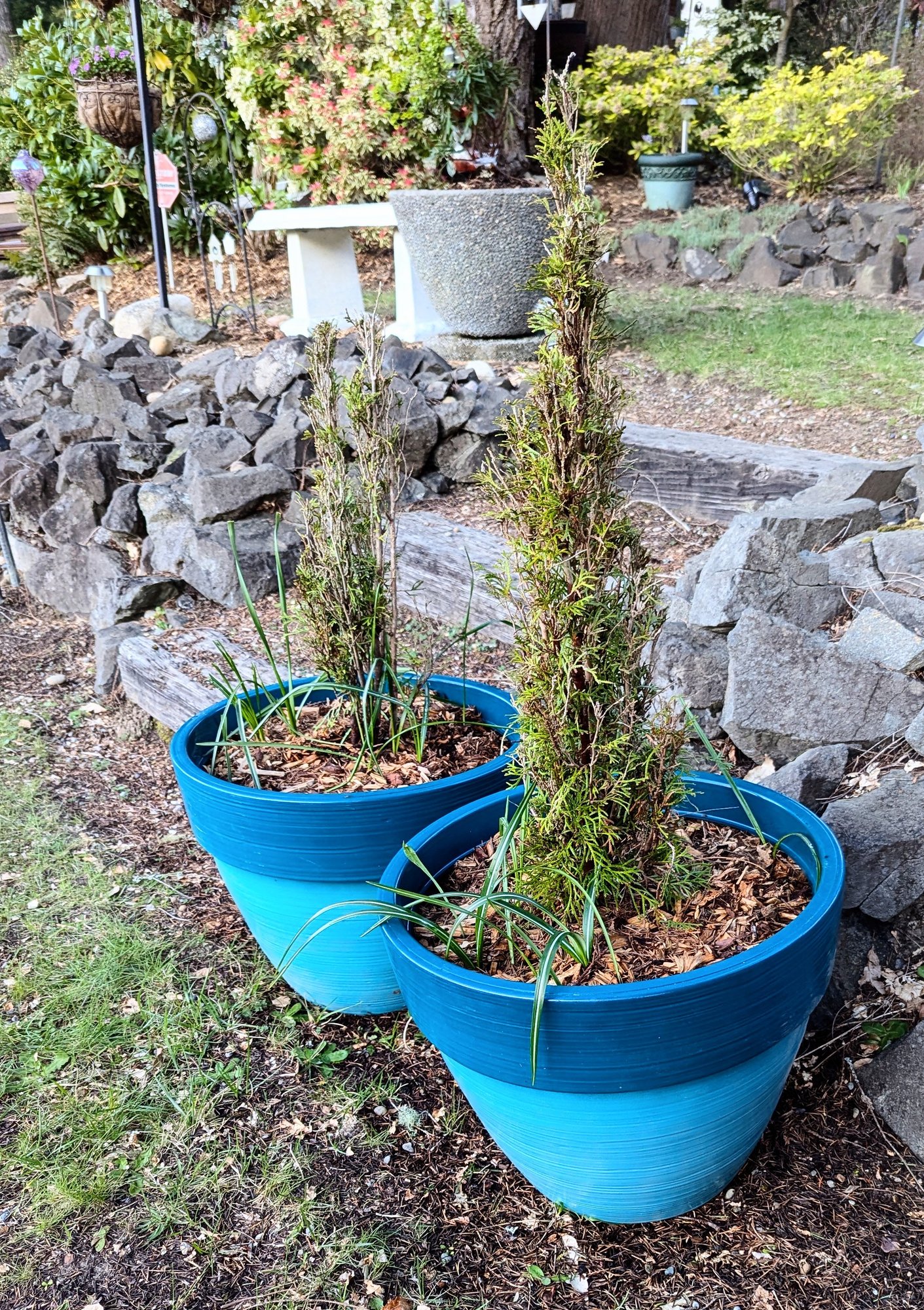 In addition to the Arbs, there are also some flowering bulbs in those pots.
