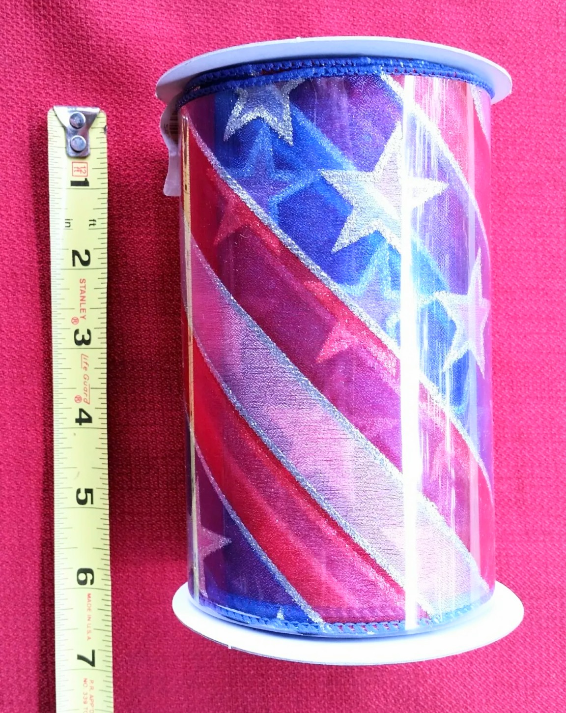 3 NEW Craft Ribbon Spool - Stars and Stripes - Nylon 5.5" wide by 10 Yards per spool. Wire edging to form and hold shape better.