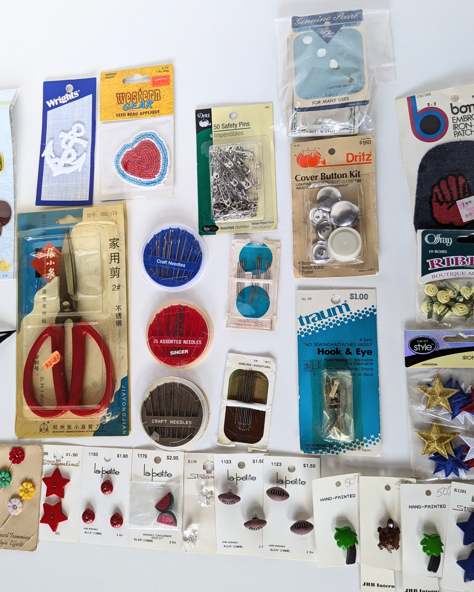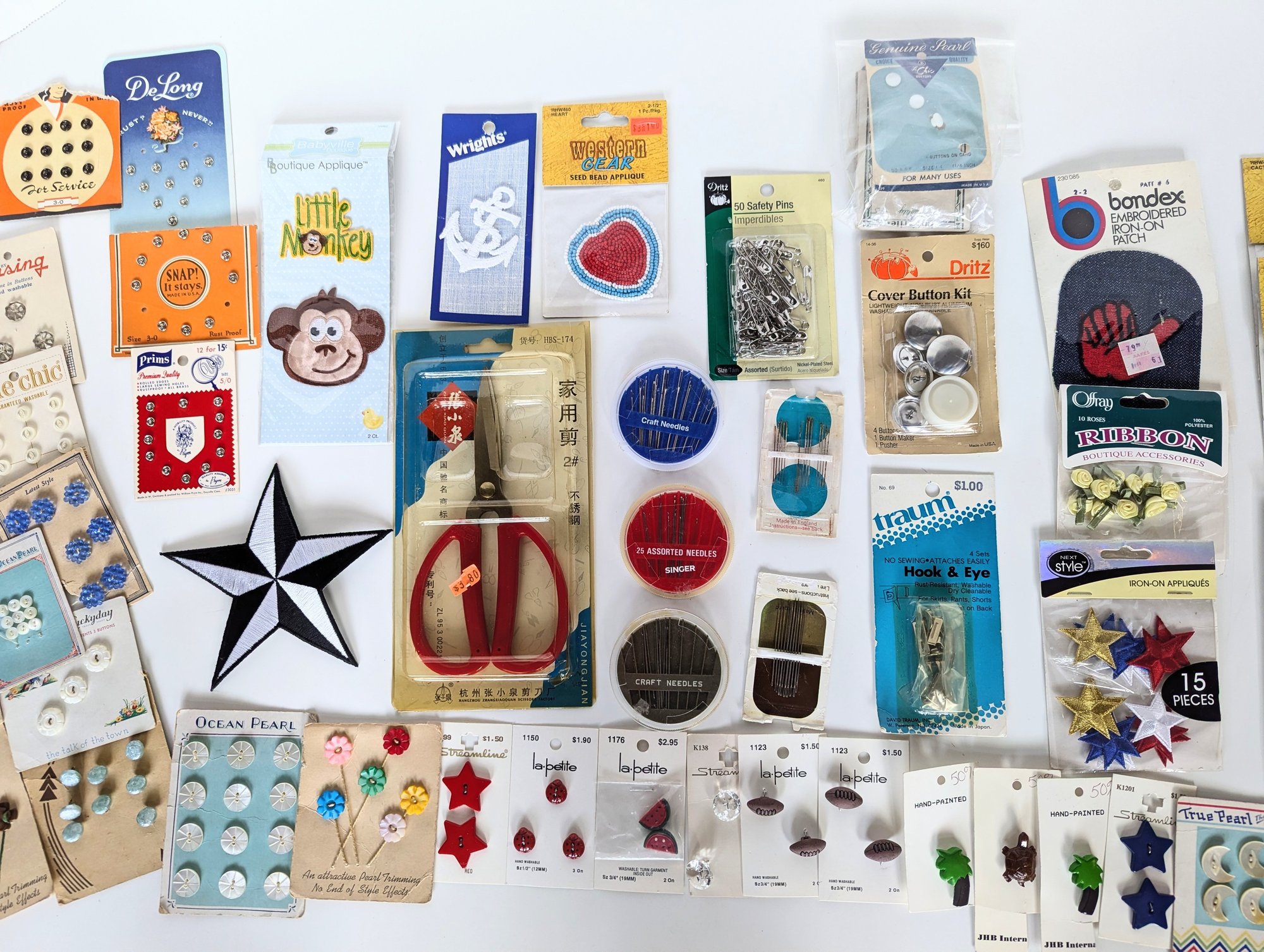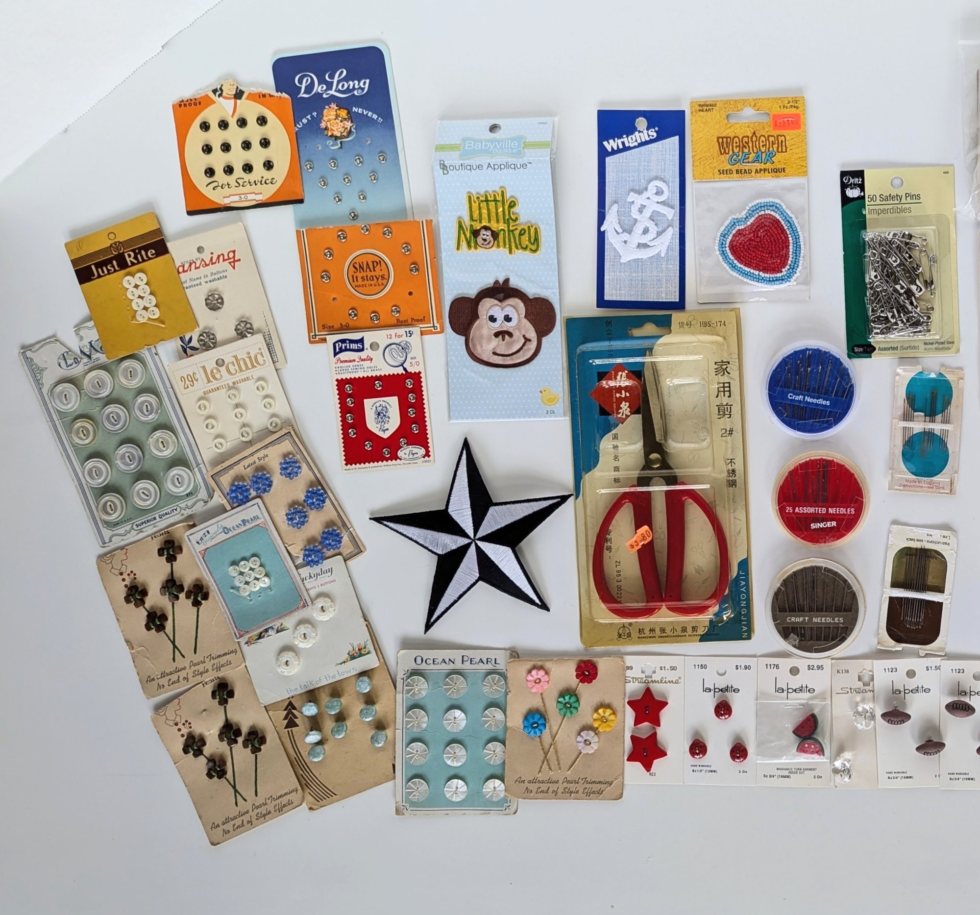 Antique buttons, vintage appliques & patches, craft needles, sewing needles and more!