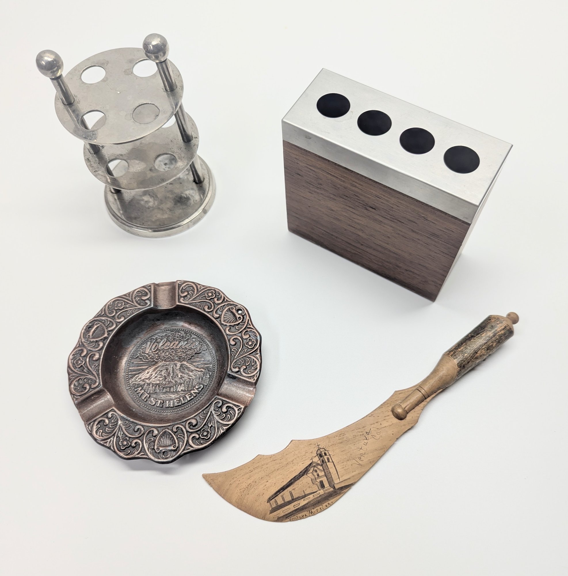 Handcrafted Wooden Knife With Image, Mt St Helens Ashtray, Garden Sign, Holders And More