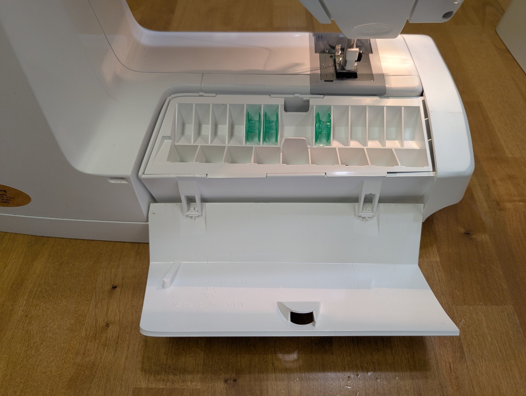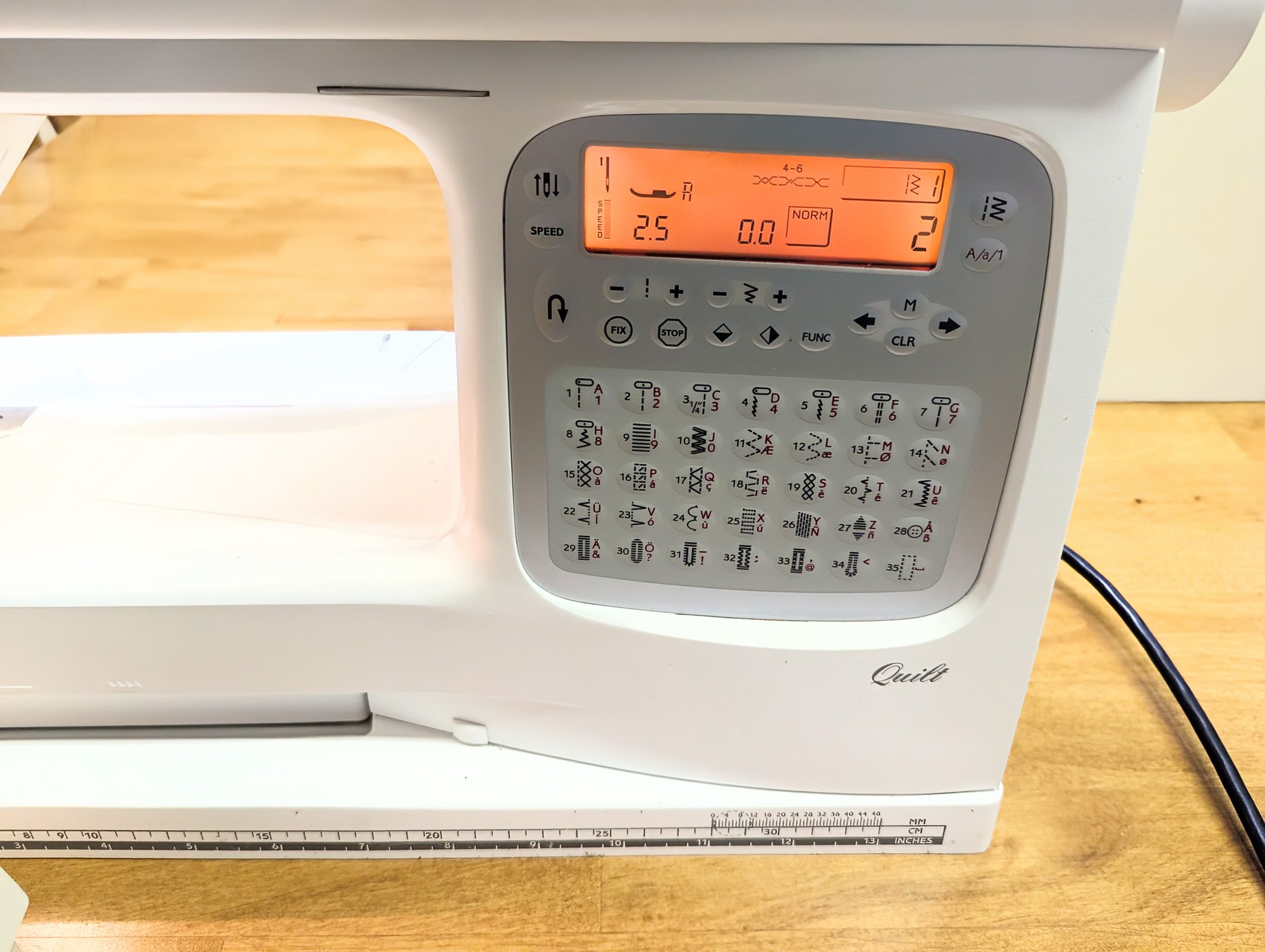 Runs and sews, but from time to time stops and gives a fault code. Turn it on and off and the error code clears, but eventually comes back. Intermittent operation. May need a calibration, may need shop repair. Being Offered as is, as shown.