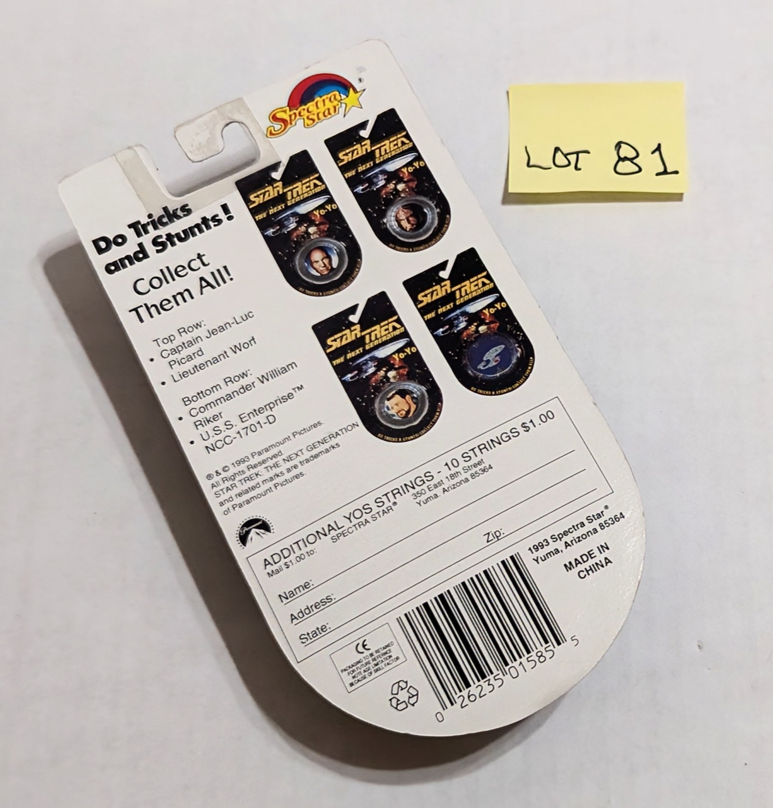 Lot 81 Star Trek The Next Generation Jean-Luc Picard Yo-Yo By Spectra Star - Sealed