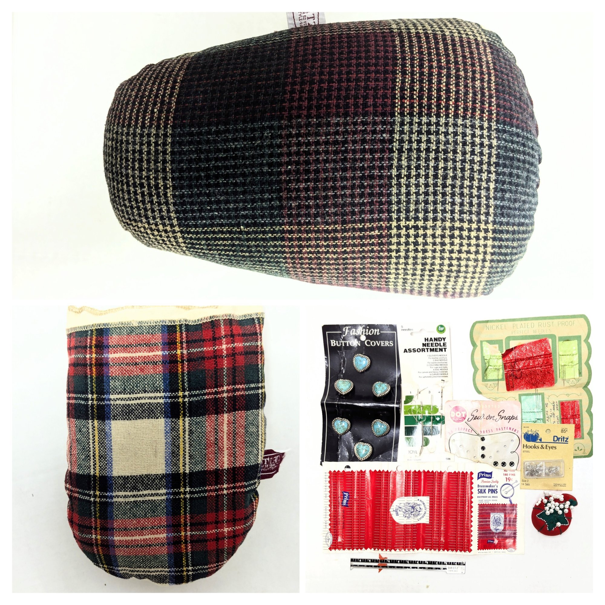 Vintage Dritz Dressmaker's Ham, Plaid Pressing Sleeve Tartan Plaid Wool Sleeve & Vintage Dritz Tailors Sewing Mit also in Tartan Plaid Wool.