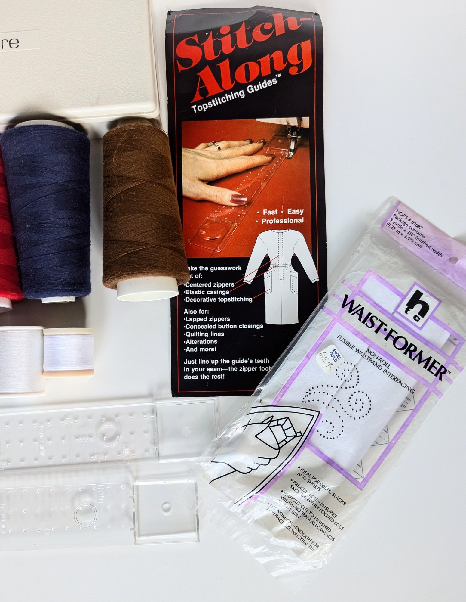 Top stitch guide for seams and zippers.
