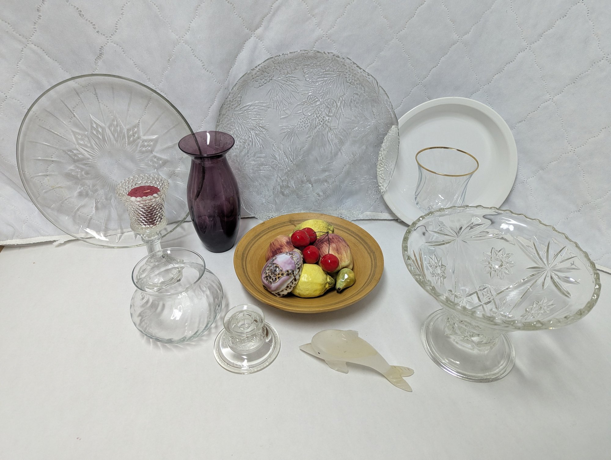 Wooden Bowl With Fruit, Glass Serving Plates, Candle Holders And More - Local Pick-up