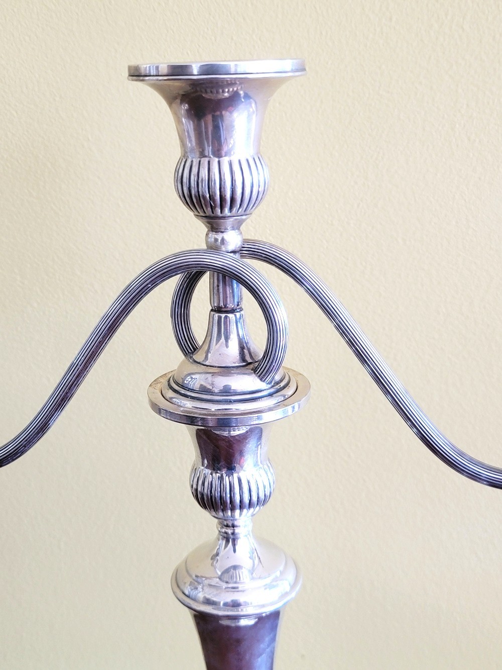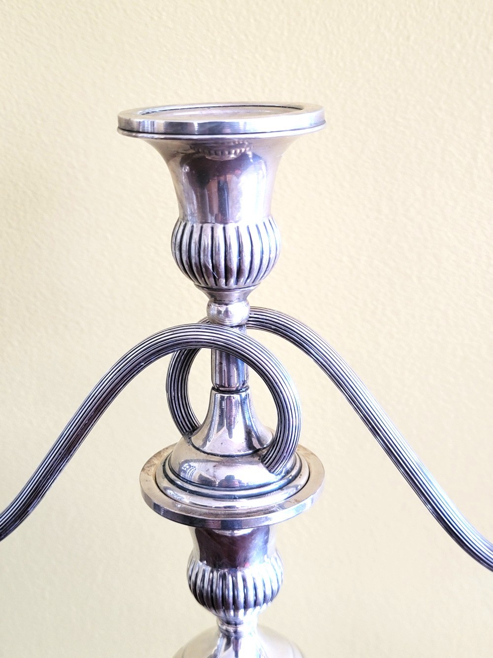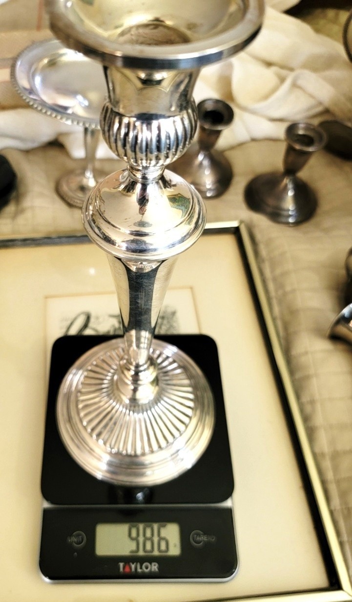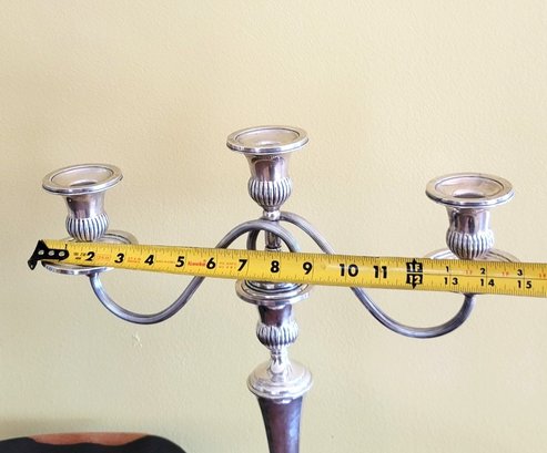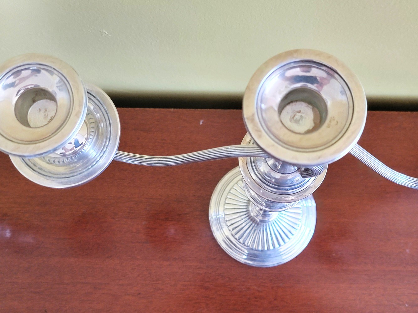 Massive 17 Inch Wilcox Evertsen Sterling Silver 3 Light Candelabras Pair Convertible International Silver Estate. SPECIFICATIONS: Pair of American Sterling Silver 3-Light Candelabras. Manufacturer: Wilcox & Evertsen (International Silver Co). Height: 17". Top Span: 15". Base Diameter: 5". Construction: Sterling Silver (.925) skin reinforced and weighted with cement. Note: Internal threaded rods/core are magnetic as per standard weighted construction. WEIGHTS: Base: 984g each. Top: 627g each. Total Gross Weight: 3,222g for the pair. MANUFACTURER HISTORY: Wilcox & Evertsen was founded in 1892 and became a premier division of the International Silver Company in Meriden, CT, in 1898. Known for high-quality American hollowware, their hallmark features a stylized griffin above the International "S" logo. VALUATION DATA: Estimated Sterling Silver Content: ~322g (10% of gross). Silver Spot Price ($2.59/g as of 4/20/26). Estimated Melt Value: $834.00. Estimated Retail/Auction Value: $1,200-$2,000 based on height and maker. Shipping: Add $15.00 to direct USPS costs within the USA. Buy more than one item and combine shipments. First item is at the highest USPS cost then all other items are $1.00 additional costs in the same box. Multiple boxes don't apply. A very nice item from original estate that it was signed over to. PICKUP!!! ALL ITEMS WON THAT ARE LESS THAN $50.00 SINGLE OR IN COMBINATION ARE CHARGED A $10.00 PICKUP FEE. NO EXCEPTIONS. TAKE ADVANTAGE OF THE OPPORTUNITY! WIN MORE ITEMS!!!