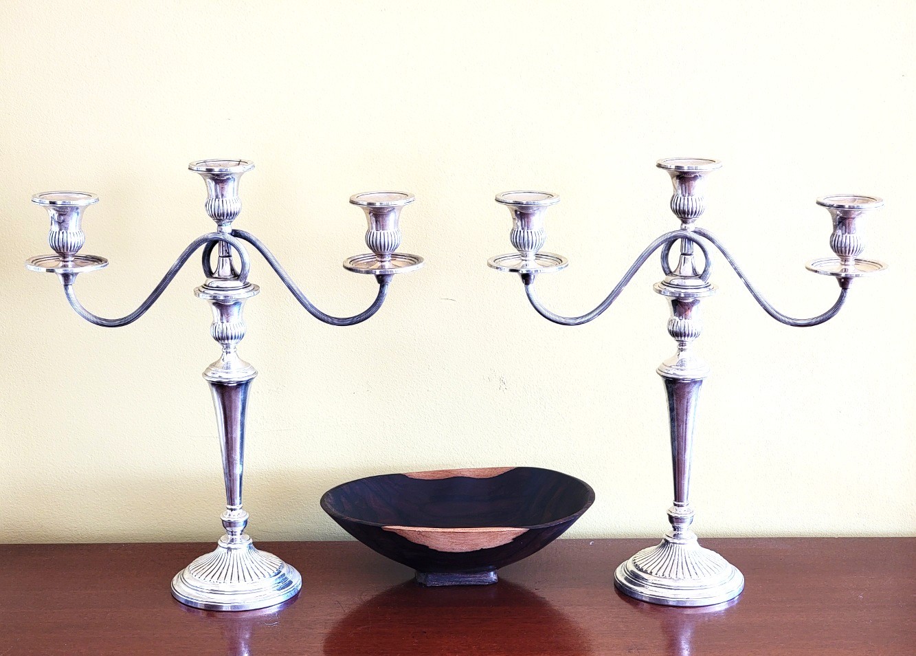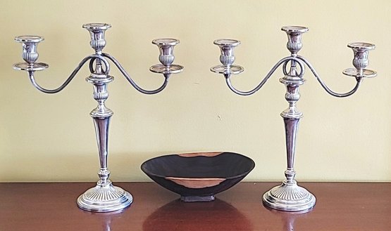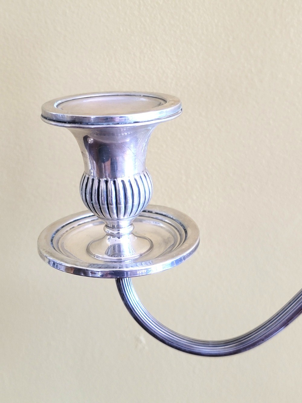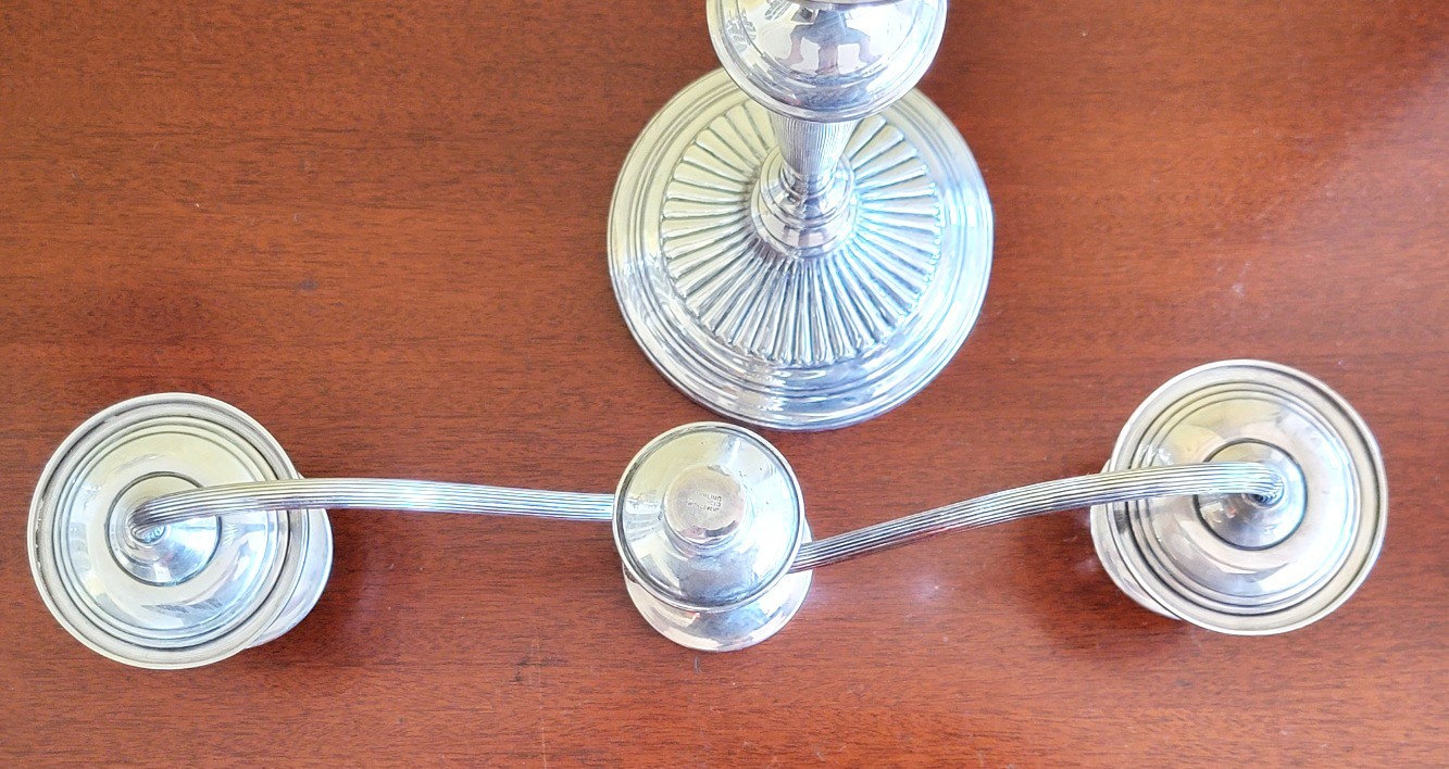 Massive 17 Inch Wilcox Evertsen Sterling Silver 3 Light Candelabras Pair Convertible International Silver Estate. SPECIFICATIONS: Pair of American Sterling Silver 3-Light Candelabras. Manufacturer: Wilcox & Evertsen (International Silver Co). Height: 17". Top Span: 15". Base Diameter: 5". Construction: Sterling Silver (.925) skin reinforced and weighted with cement. Note: Internal threaded rods/core are magnetic as per standard weighted construction. WEIGHTS: Base: 984g each. Top: 627g each. Total Gross Weight: 3,222g for the pair. MANUFACTURER HISTORY: Wilcox & Evertsen was founded in 1892 and became a premier division of the International Silver Company in Meriden, CT, in 1898. Known for high-quality American hollowware, their hallmark features a stylized griffin above the International "S" logo. VALUATION DATA: Estimated Sterling Silver Content: ~322g (10% of gross). Silver Spot Price ($2.59/g as of 4/20/26). Estimated Melt Value: $834.00. Estimated Retail/Auction Value: $1,200-$2,000 based on height and maker. Shipping: Add $15.00 to direct USPS costs within the USA. Buy more than one item and combine shipments. First item is at the highest USPS cost then all other items are $1.00 additional costs in the same box. Multiple boxes don't apply. A very nice item from original estate that it was signed over to. PICKUP!!! ALL ITEMS WON THAT ARE LESS THAN $50.00 SINGLE OR IN COMBINATION ARE CHARGED A $10.00 PICKUP FEE. NO EXCEPTIONS. TAKE ADVANTAGE OF THE OPPORTUNITY! WIN MORE ITEMS!!!