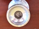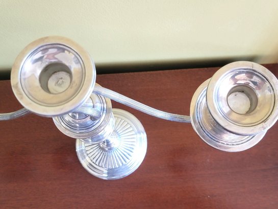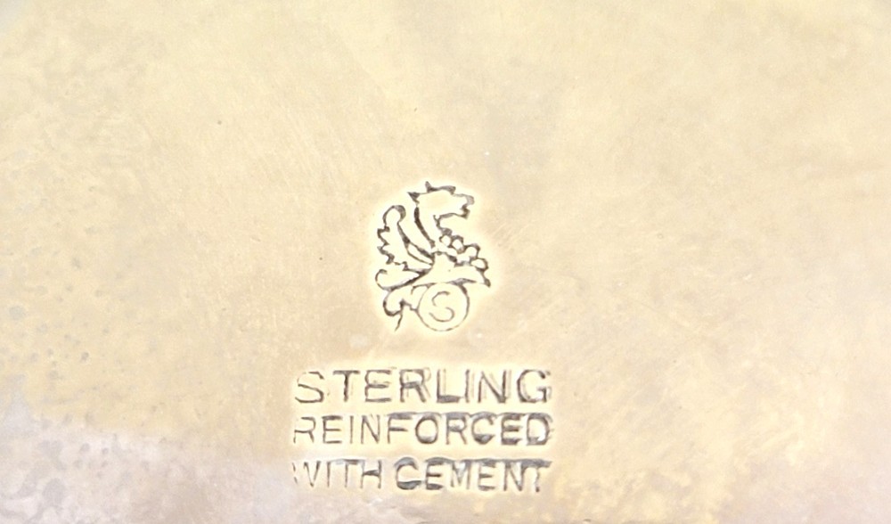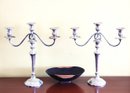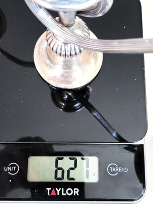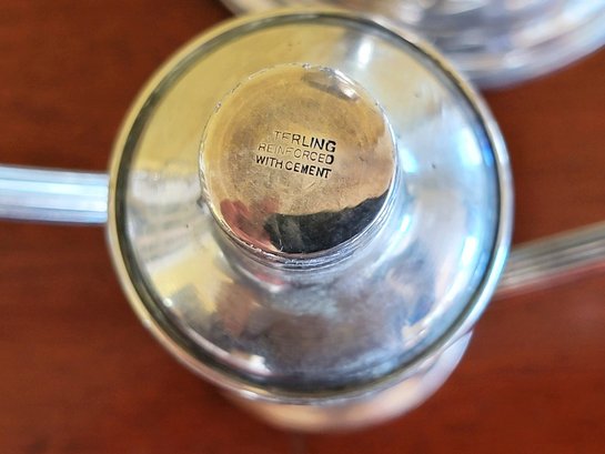 Notes: Good condition, see description. Period piece with cement and metal support. Opening bid a percentage of pure silver melt. A nice handsome pair. Great for any dinning room table!
