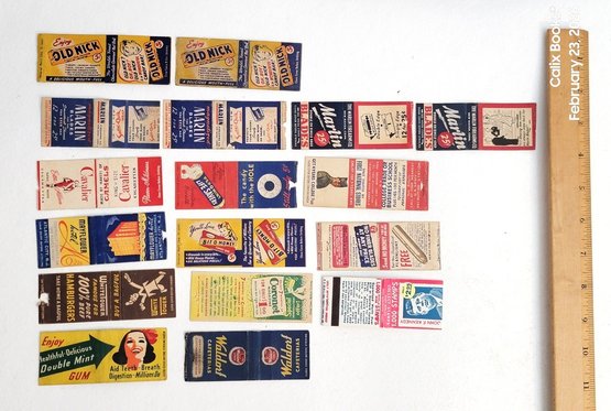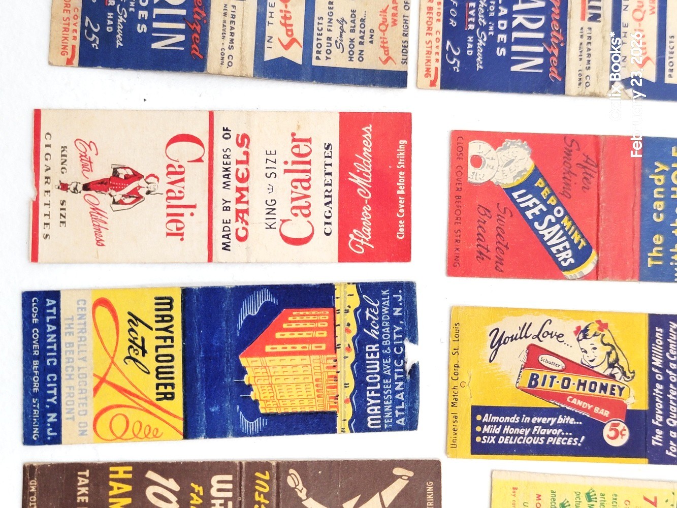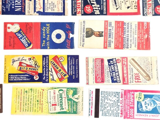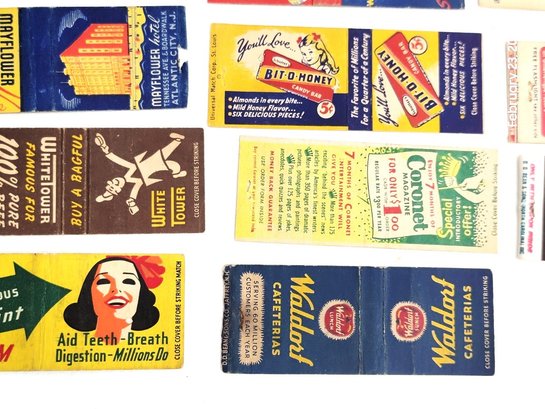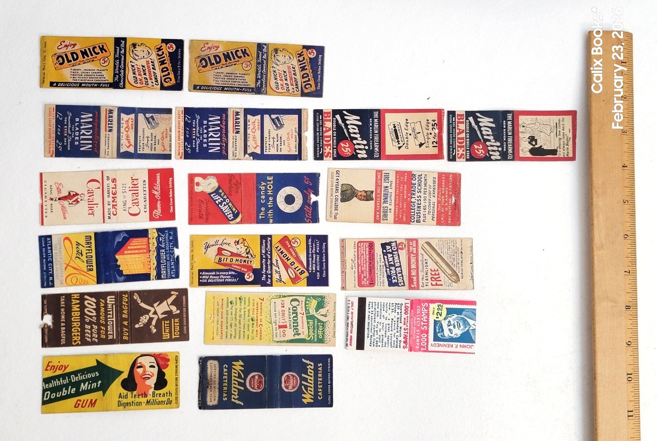 Vibrant mid century matchbook lot packed with bold advertising themes and strong visual collector appeal, a lively mixed group spanning candy tobacco hotels diners political promotions and classic Americana graphics with bright color and clean presentation across the set. This is the kind of eye catching ephemera bundle that outperforms its individual parts and continues to draw steady interest from nostalgia buyers decorators and collectors seeking authentic period advertising at accessible levels, with a confident expected value in the $20 to $25 range. Shipping: First lot is $4.00 plus postage USPS to your zip. Next lot adds $0.25 per lot thereafter if no special shipping is required. Items over $100.00 single or combined require insurance and will be added to shipping costs.