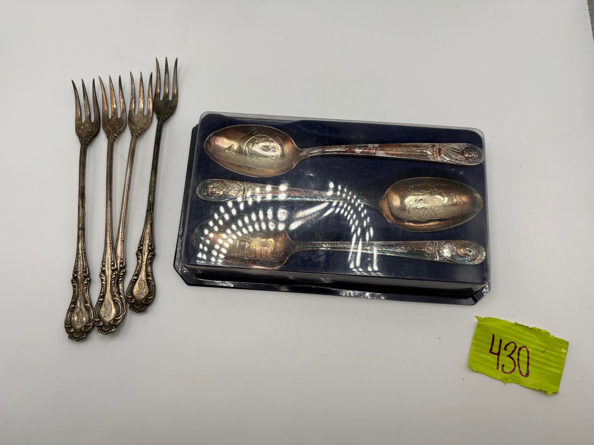 Vintage Commemorative Presidential Spoons And 1835 R Wallace Crab Forks