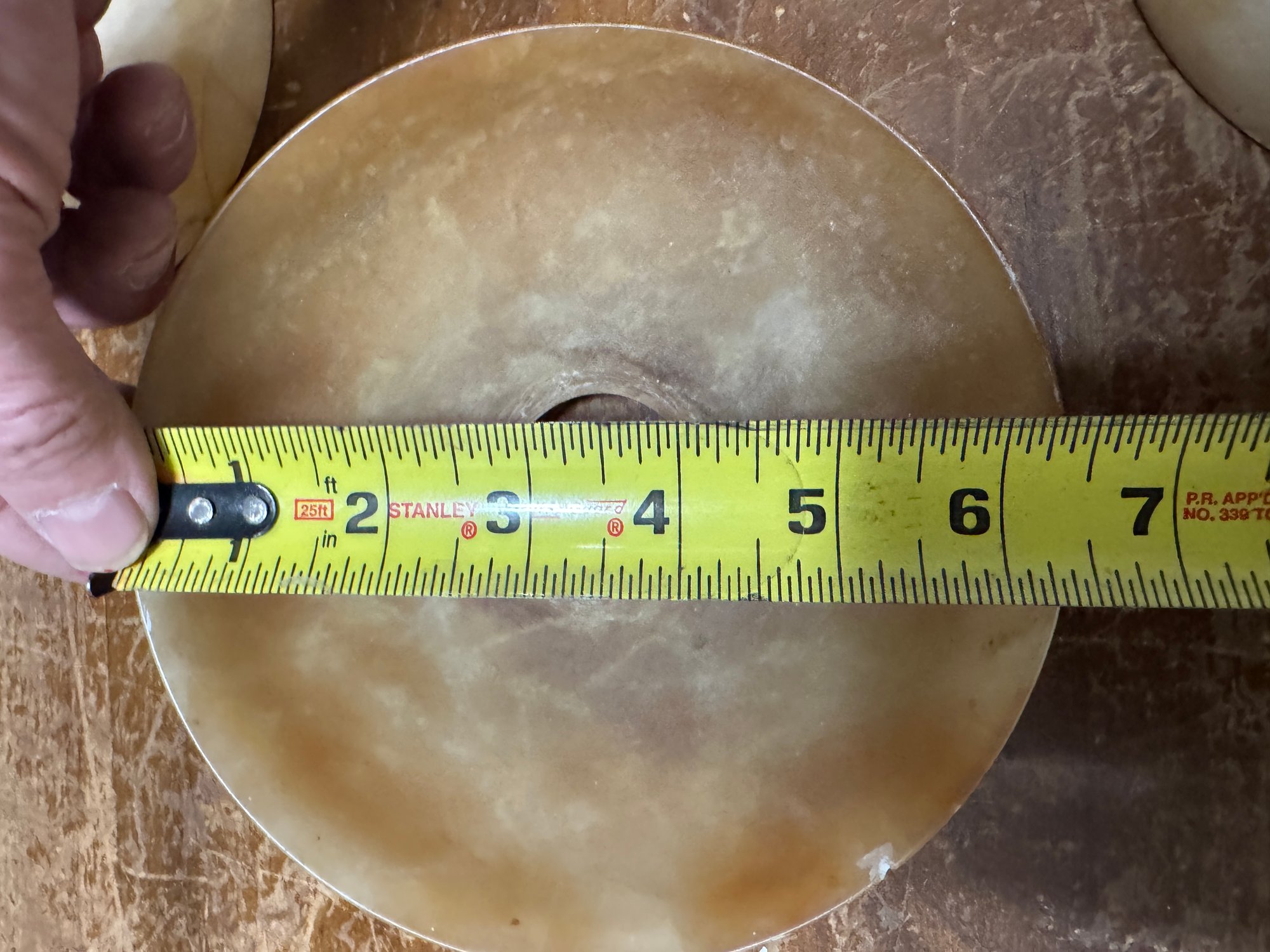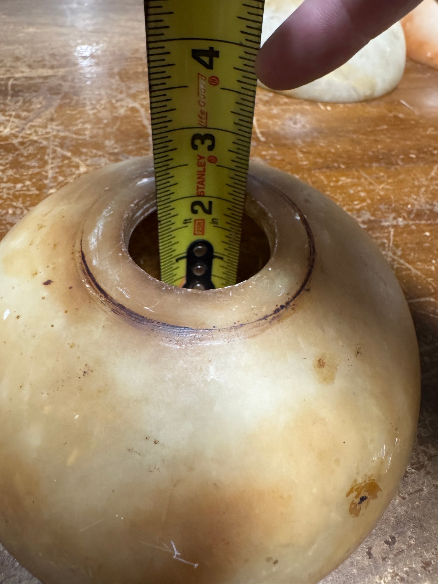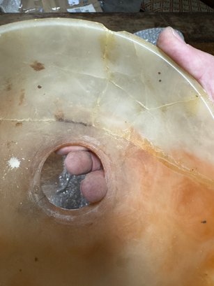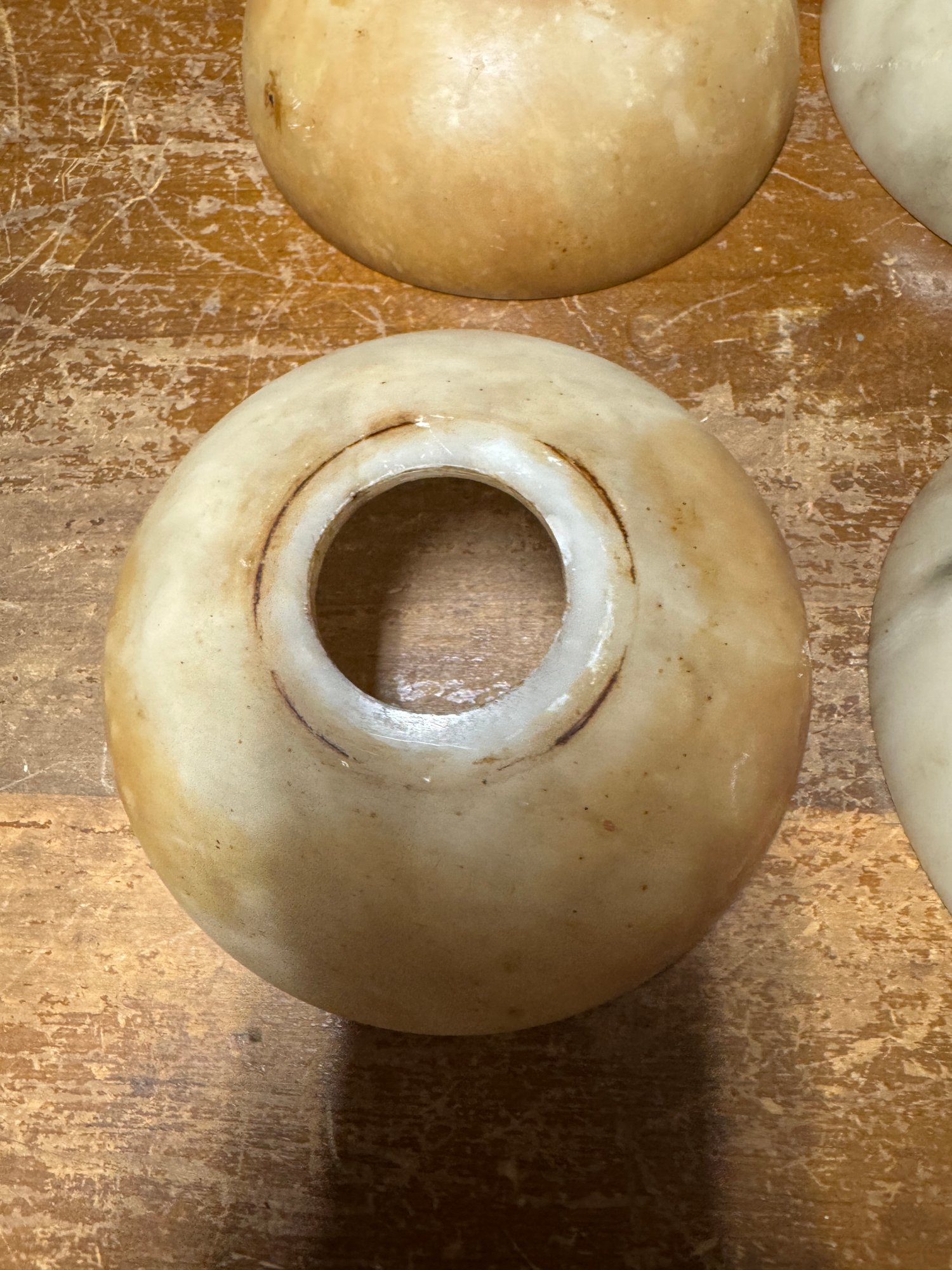 10 Antique Alabaster Shades. 9 are in pretty good condition, the reddish one has damage. See pics for size.