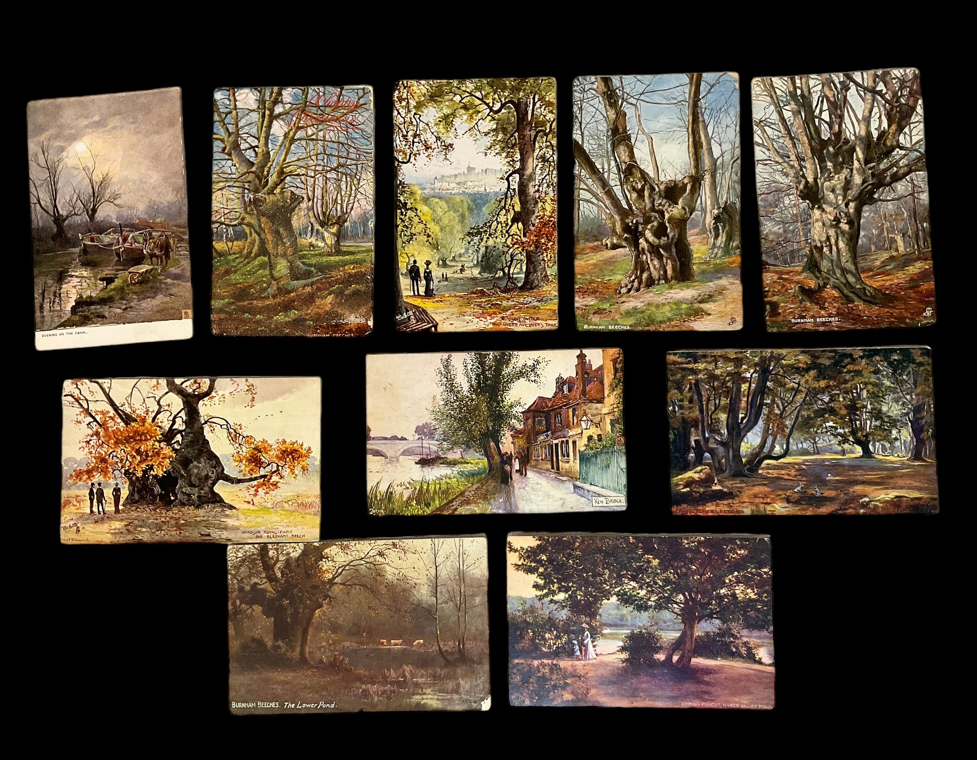 10 Tucks Oilette Tree Postcards, some with WOB and some without.